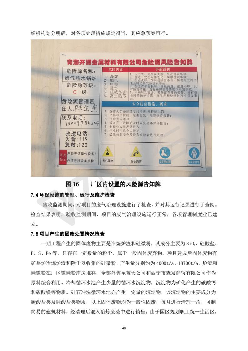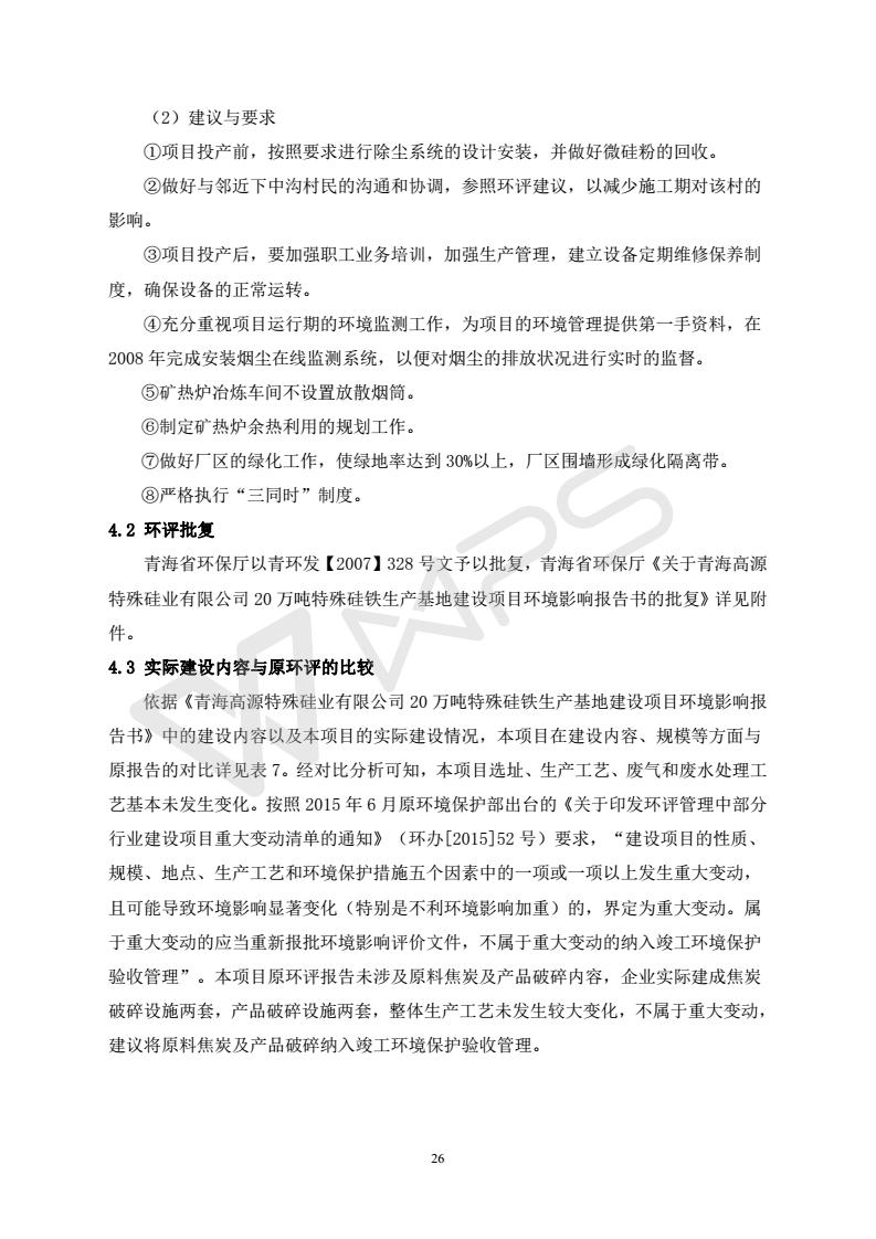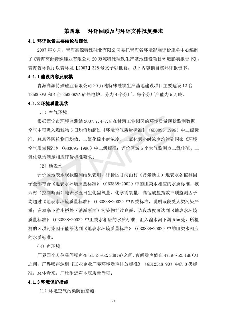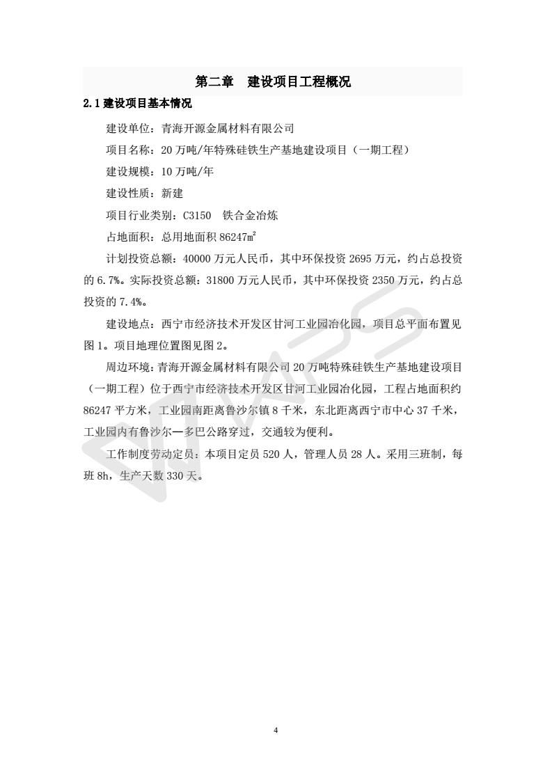青海開源金屬材料有限公司20萬噸特殊硅鐵生產(chǎn)基地建設項目(一期工程)竣工環(huán)境保護驗收報告書會后修改20180521