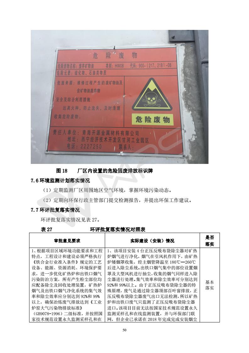 2018年1月11日,青海開源金屬材料有限公司組織召開20萬噸/年特殊硅鐵生產(chǎn)基地建設項目(一期工程)竣工環(huán)境保護驗收會。 青海開源金屬材料有限公司20萬噸特殊硅鐵生產(chǎn)基地建設項目(一期工程)驗收組意見.