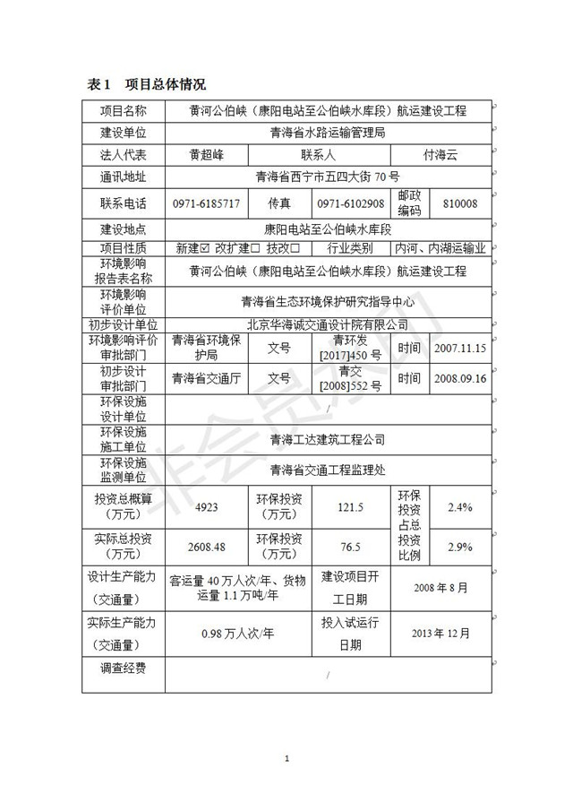 黃河公伯峽(康楊電站至公伯峽水庫(kù)段)航運(yùn)建設(shè)工程竣工環(huán)境保護(hù)驗(yàn)收調(diào)查報(bào)告表公示發(fā)布日期:(2018-11-16) 點(diǎn)擊次數(shù):2490 |