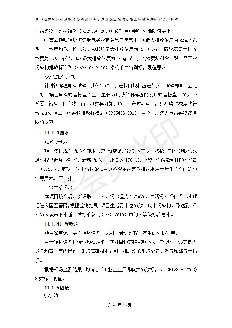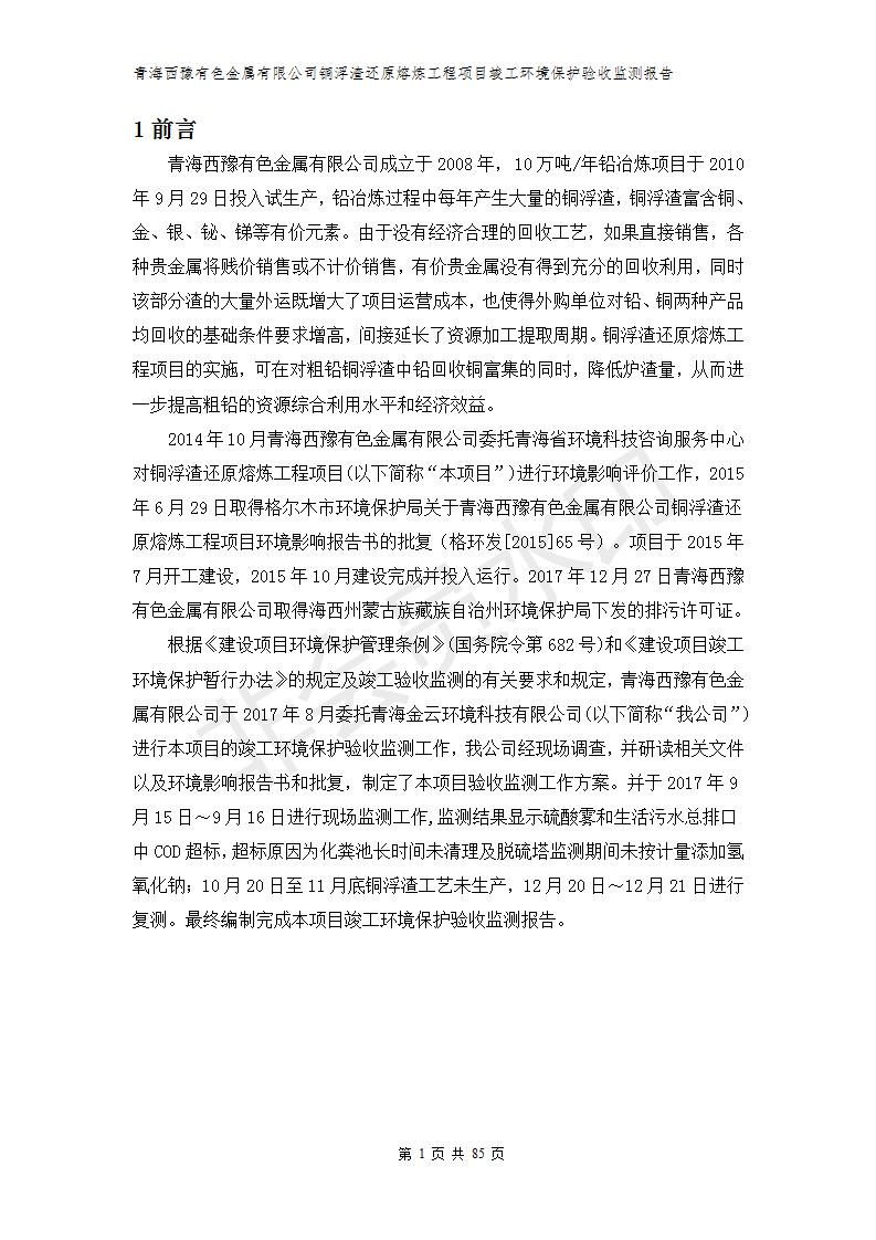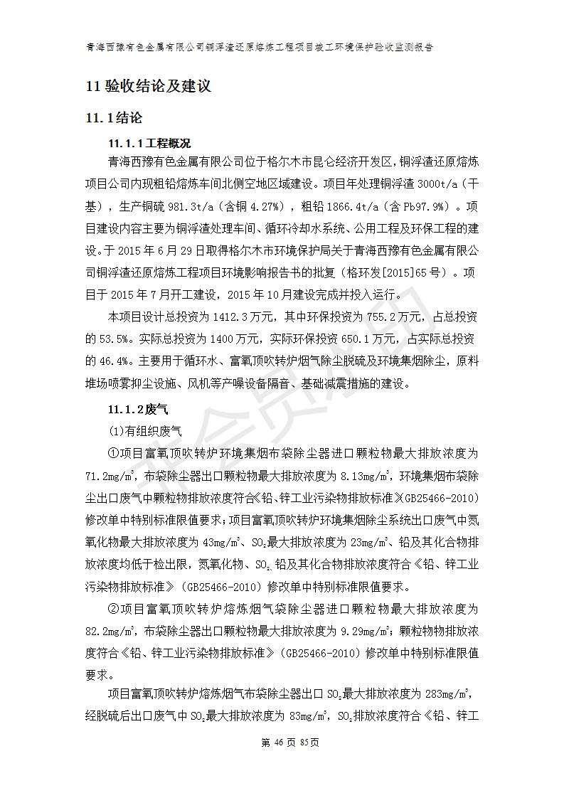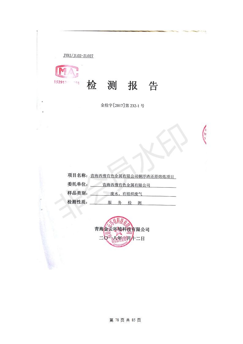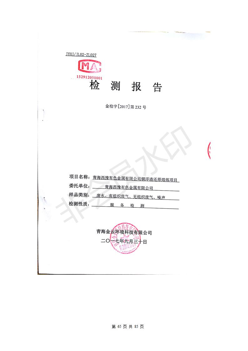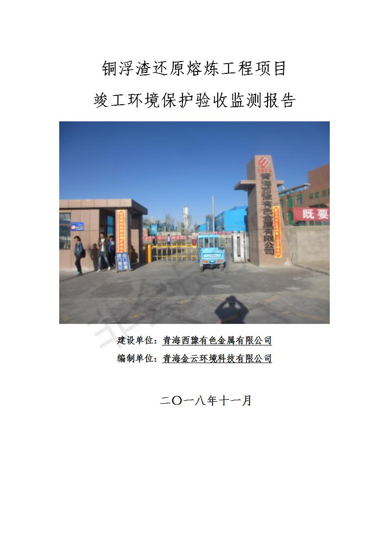 青海西豫有色金屬有限公司銅浮渣還原熔煉工程項(xiàng)目竣工環(huán)境保護(hù)驗(yàn)收監(jiān)測(cè)報(bào)告公示發(fā)布日期:(2018-11-23) 點(diǎn)擊次數(shù):2636 |