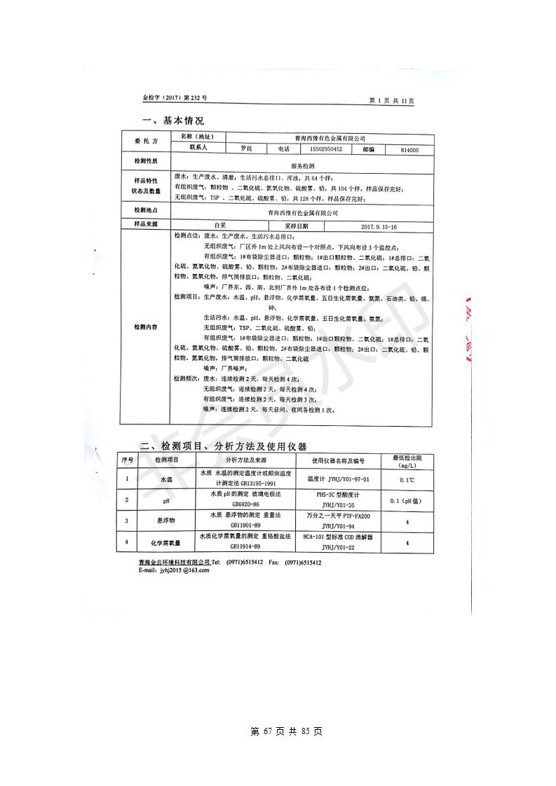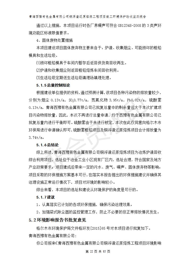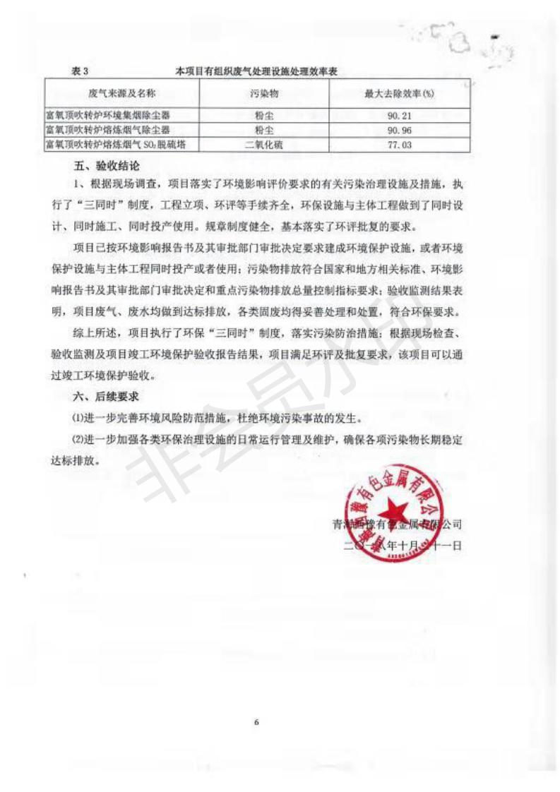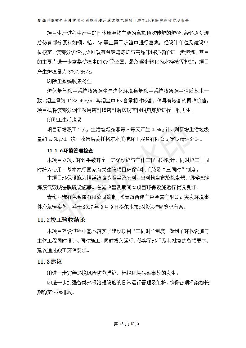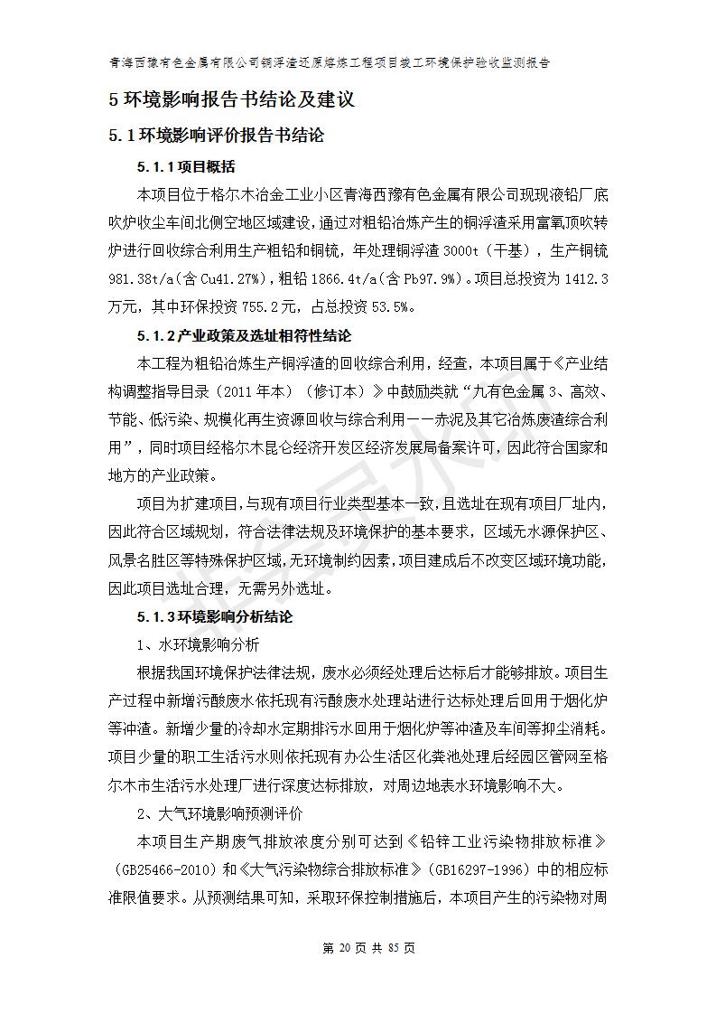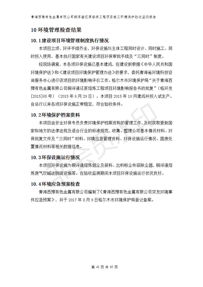 青海西豫有色金屬有限公司銅浮渣還原熔煉工程項(xiàng)目竣工環(huán)境保護(hù)驗(yàn)收監(jiān)測(cè)報(bào)告公示發(fā)布日期:(2018-11-23) 點(diǎn)擊次數(shù):2636 |