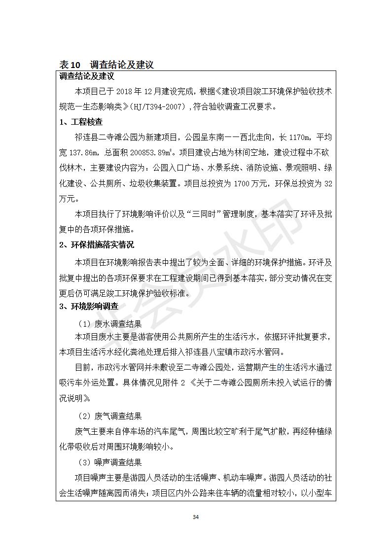 祁連縣二寺灘公園項目竣工環(huán)境保護驗收調(diào)查表公示