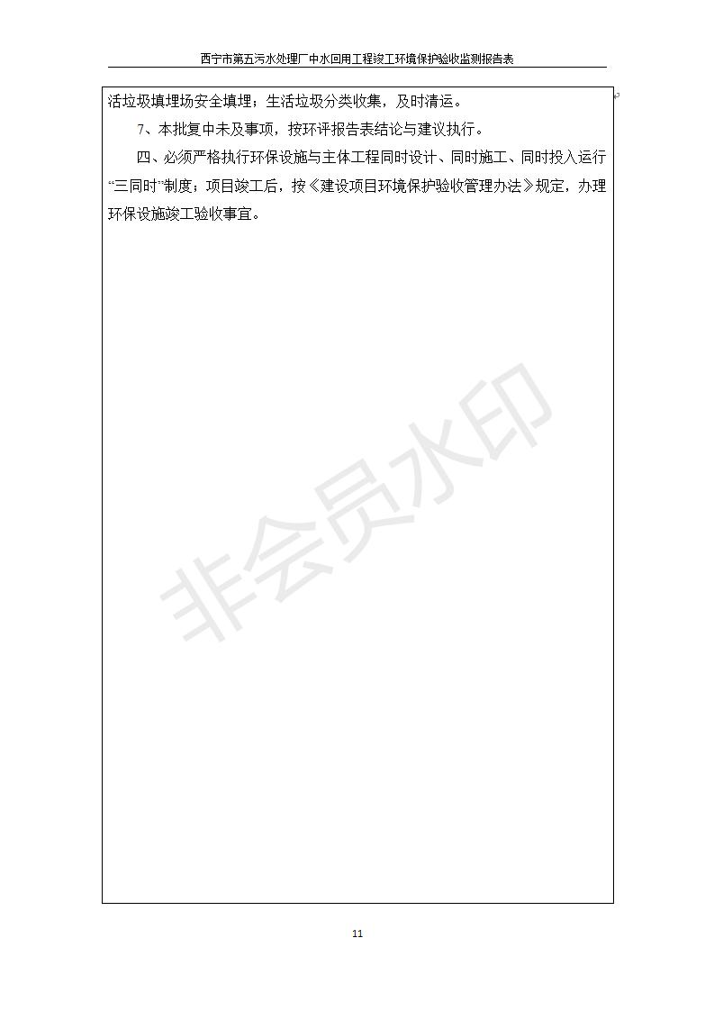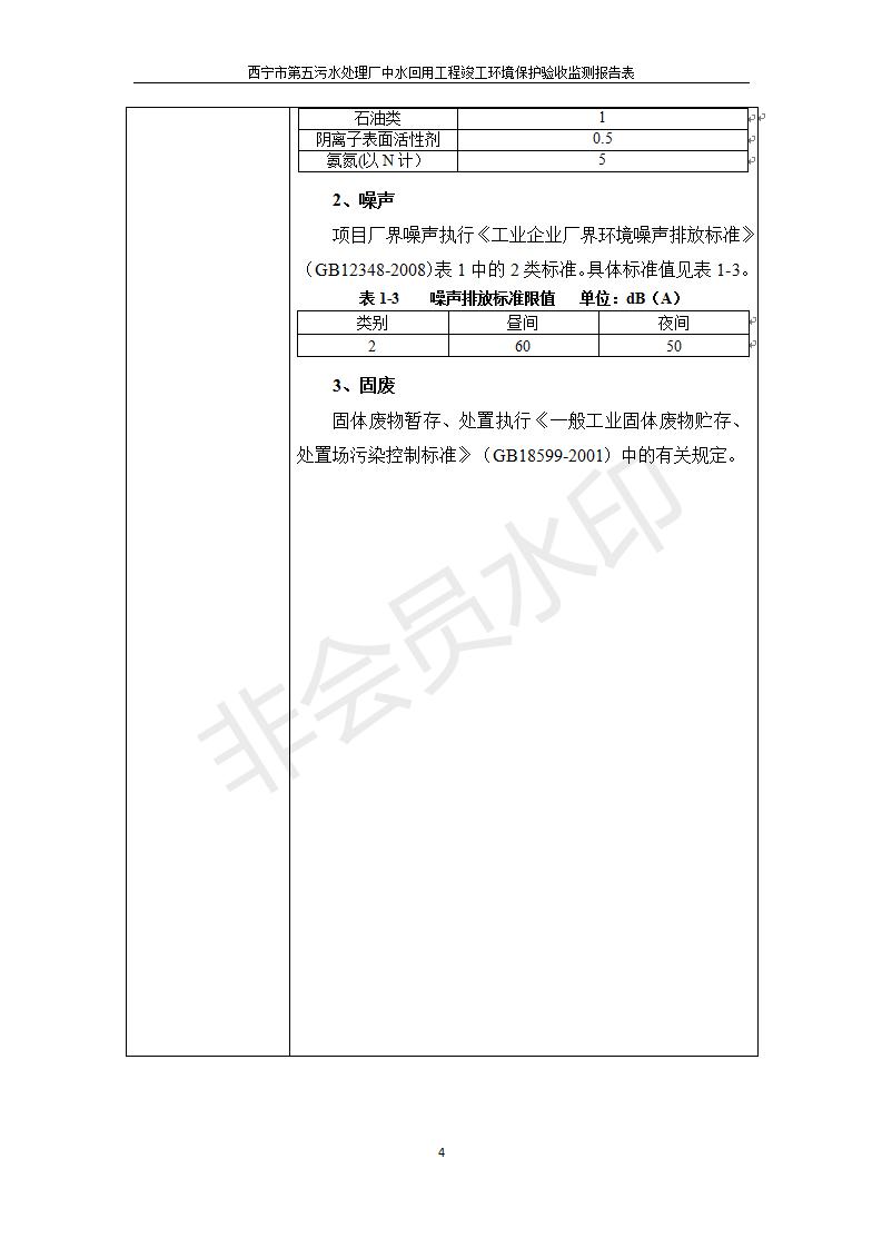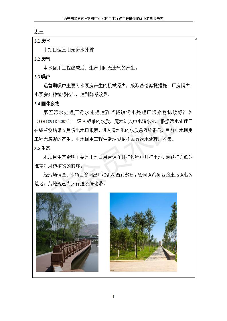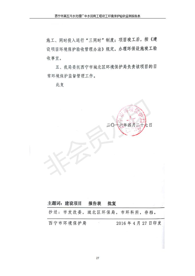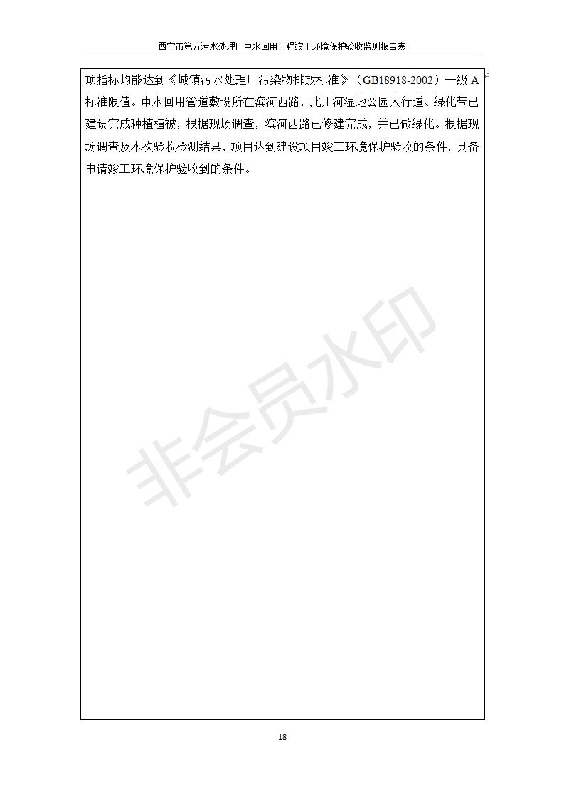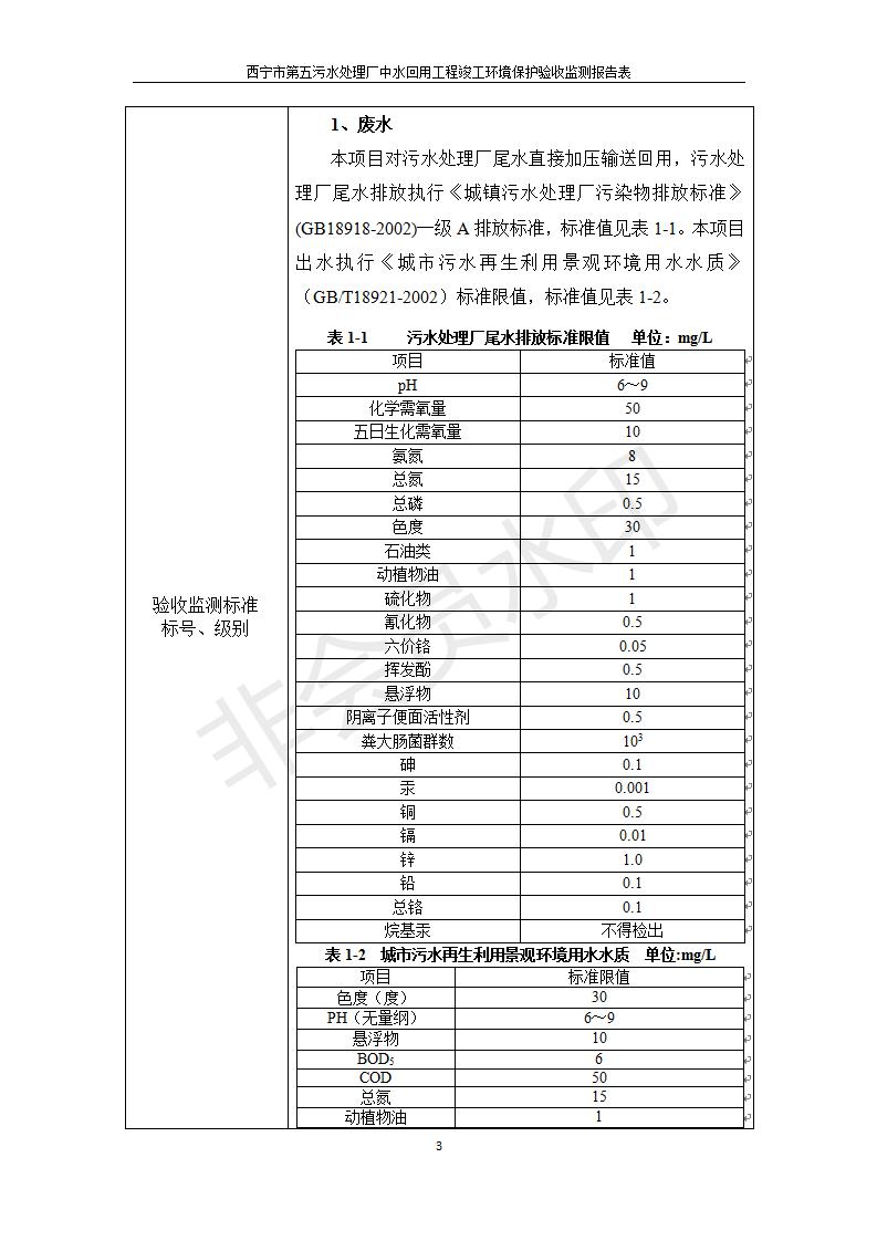 根據(jù)中華人民共和國國務(wù)院令第682號《國務(wù)院關(guān)于修改〈建設(shè)項目環(huán)境保護(hù)管理條例〉的決定》和《建設(shè)項目竣工環(huán)境保護(hù)驗收暫行辦法》(國務(wù)院令682號),西寧市第五污水處理廠中水回用工程建設(shè)項目(包括竣工環(huán)境保護(hù)驗收監(jiān)測報告表和驗收意見)公示如下。 一、項目名稱:西寧市第五污水處理廠中水回用工程建設(shè)項目 二、地點:西寧市城北區(qū)廿十里鋪雙蘇堡 三、建設(shè)單位:西寧市排水開發(fā)建設(shè)有限公司