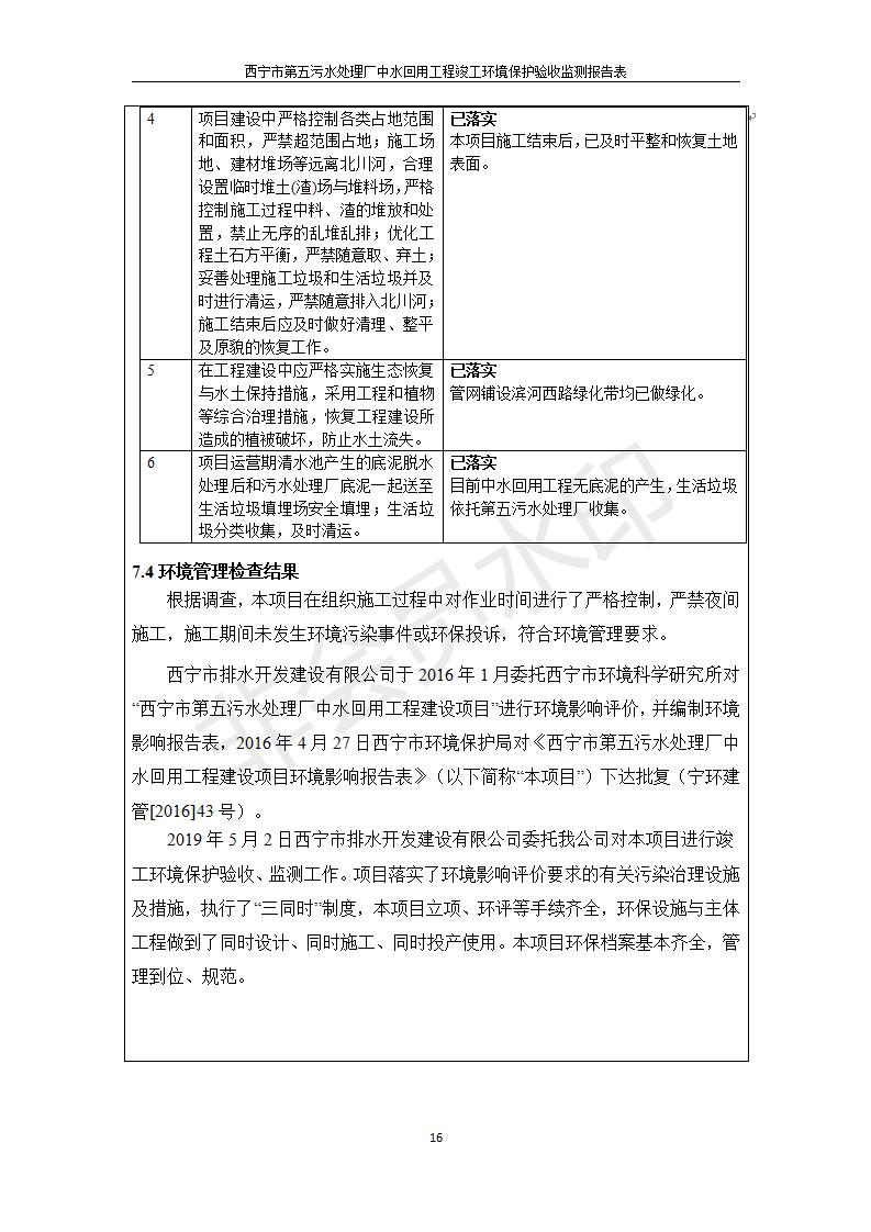西寧市第五污水處理廠中水回用工程建設(shè)項目竣工環(huán)境保護(hù)驗收監(jiān)測報告表公示發(fā)布日期:(2019-7-10) 點擊次數(shù):2380 |