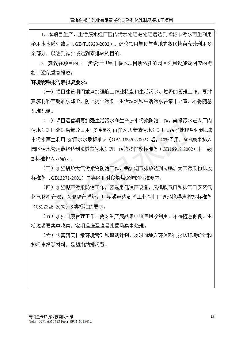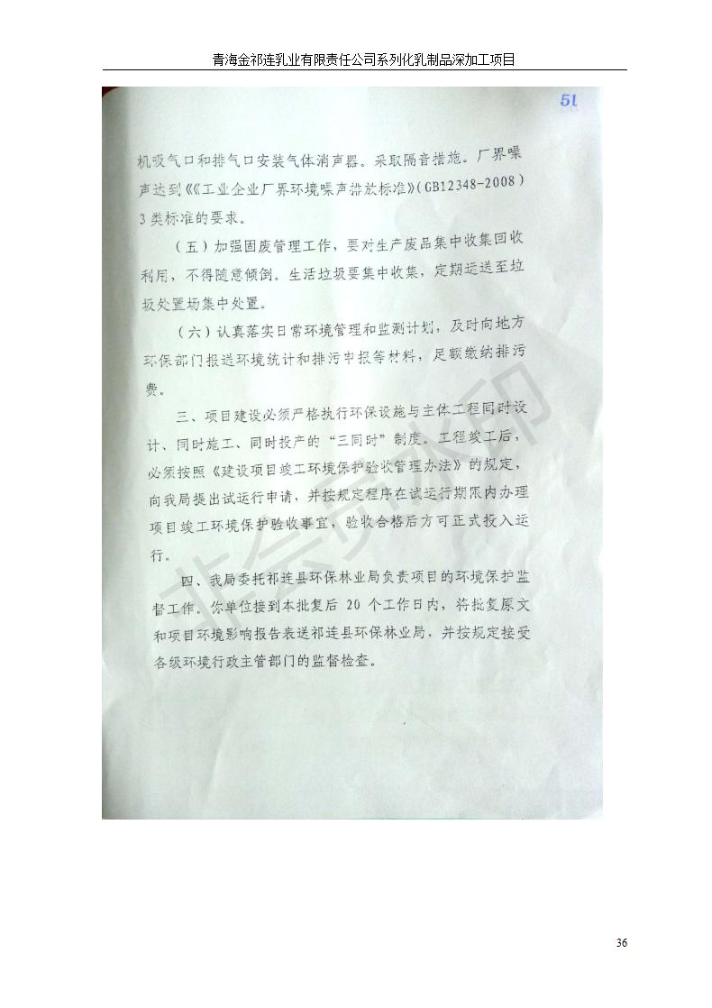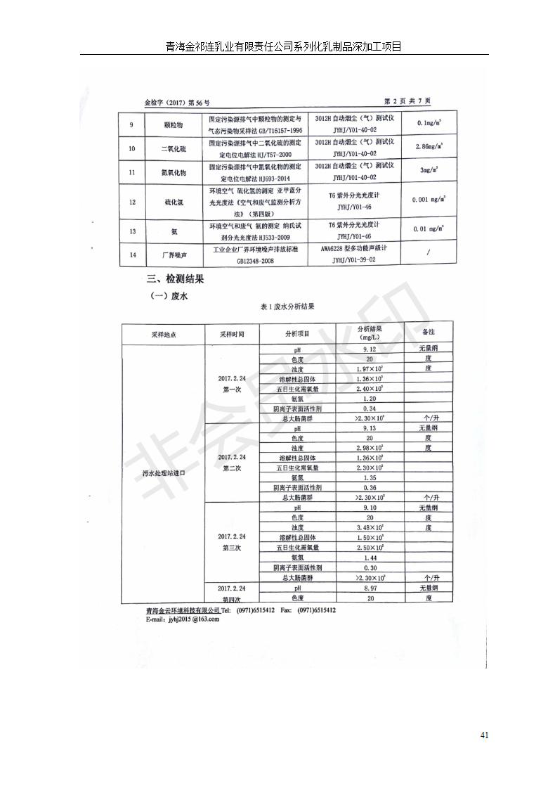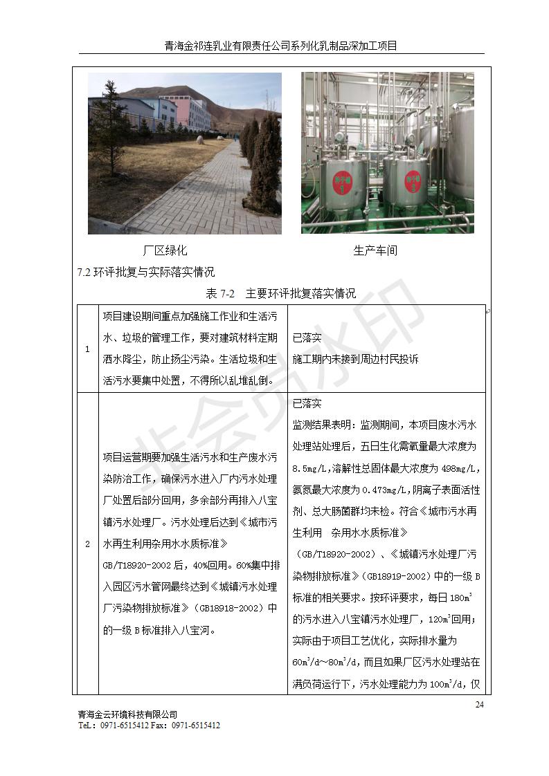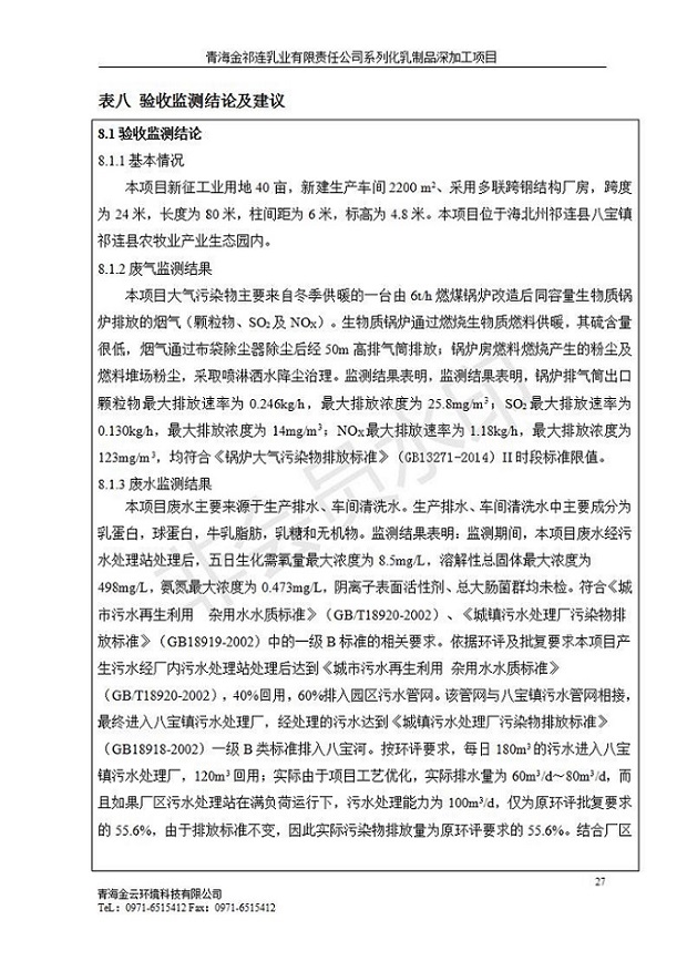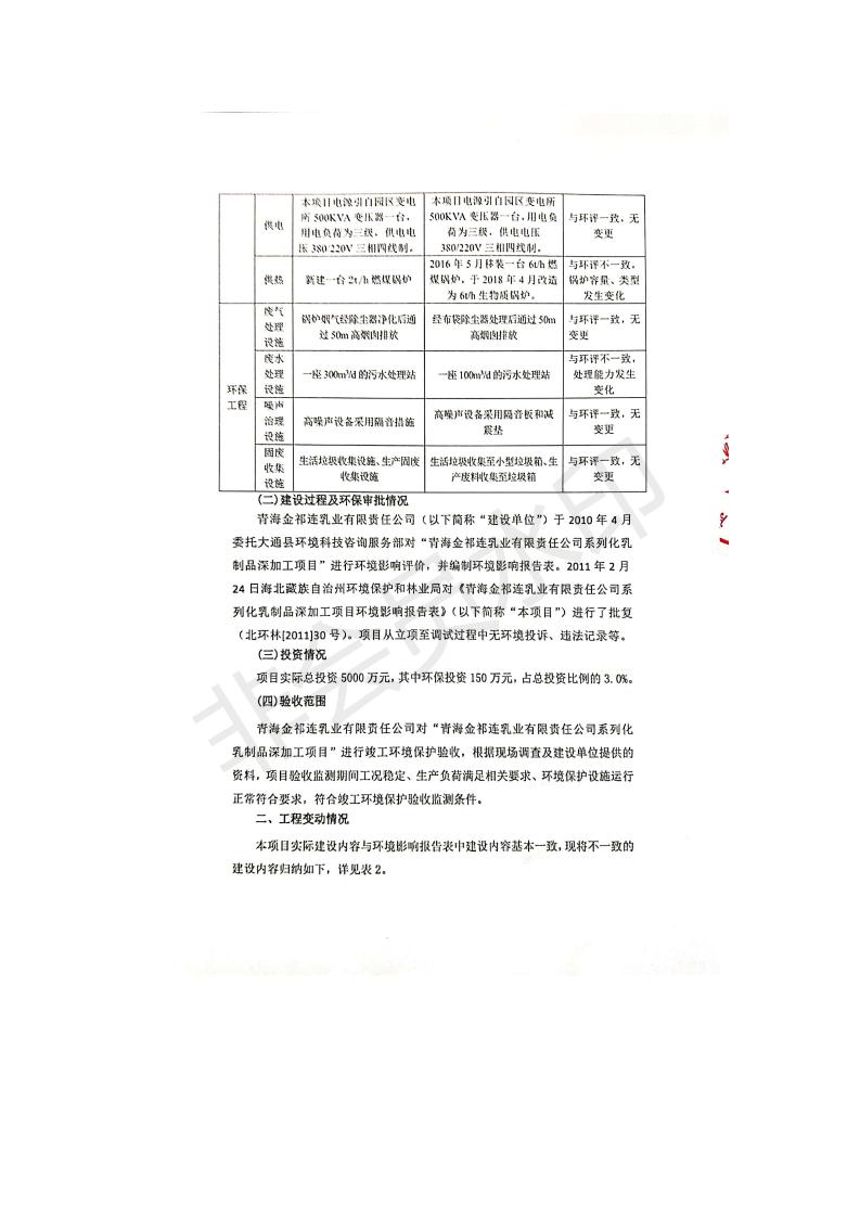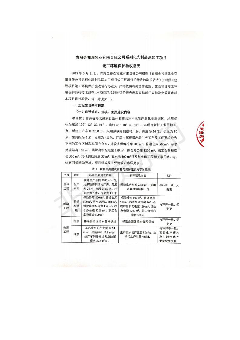 根據(jù)中華人民共和國(guó)國(guó)務(wù)院令第682號(hào)《國(guó)務(wù)院關(guān)于修改〈建設(shè)項(xiàng)目環(huán)境保護(hù)管理?xiàng)l例〉的決定》和《建設(shè)項(xiàng)目竣工環(huán)境保護(hù)驗(yàn)收暫行辦法》(國(guó)務(wù)院令682號(hào)),青海金祁連乳業(yè)有限責(zé)任公司系列化乳制品深加工項(xiàng)目(包括竣工環(huán)境保護(hù)驗(yàn)收監(jiān)測(cè)報(bào)告表和驗(yàn)收意見(jiàn))公示如下。 一、項(xiàng)目名稱(chēng):青海金祁連乳業(yè)有限責(zé)任公司系列化乳制品深加工項(xiàng)目 二、地點(diǎn):海北藏族自治州祁連縣冰溝農(nóng)牧產(chǎn)業(yè)化生態(tài)園區(qū) 三、建設(shè)單位:青海金祁連乳業(yè)有限責(zé)任公司 四、建設(shè)內(nèi)容:本項(xiàng)目新征工業(yè)用地40畝,新建生產(chǎn)車(chē)間2200 m2、采用多聯(lián)跨鋼結(jié)構(gòu)廠房,跨度為24米,長(zhǎng)度為80米,柱間距為6米,標(biāo)高為4.8米。廠房?jī)?nèi)部根據(jù)產(chǎn)品生產(chǎn)工藝及工序要求分為不同的工作區(qū)域和車(chē)間辦公室。建設(shè)有保鮮冷庫(kù)800 m2、普通倉(cāng)庫(kù)500m2、污水處理站房160 m2、鍋爐房和配電室159 m2、綜合辦公樓1200 m2、職工食堂和宿舍500 m2、其他輔助用房35 m2、蓄水池100 m2以及與土建工程相關(guān)聯(lián)的水、電、熱官網(wǎng)等輔助設(shè)施。 五、聯(lián)系人:張工 六、聯(lián)系電 話:0971-6515411 七、公示時(shí)間:二〇一九年七月十日至二〇一九年八月六日 公示期間,對(duì)上述公示內(nèi)容如有異議,請(qǐng)以書(shū)面形式反饋,個(gè)人須署真實(shí)姓名,單位須加蓋公章。