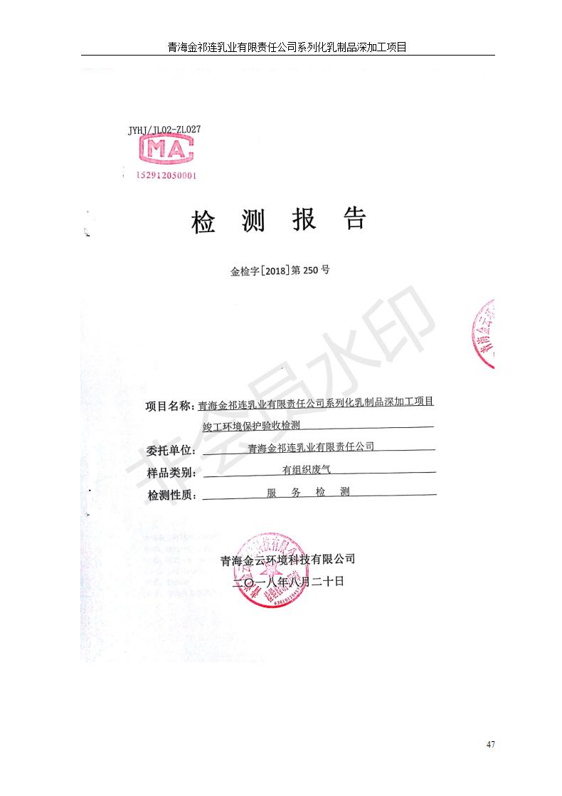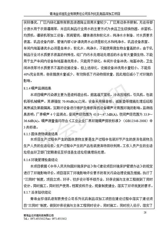 青海金祁連乳業(yè)有限責(zé)任公司系列化乳制品深加工項(xiàng)目竣工環(huán)境保護(hù)驗(yàn)收監(jiān)測(cè)報(bào)告表公示發(fā)布日期:(2019-7-10) 點(diǎn)擊次數(shù):2247 |