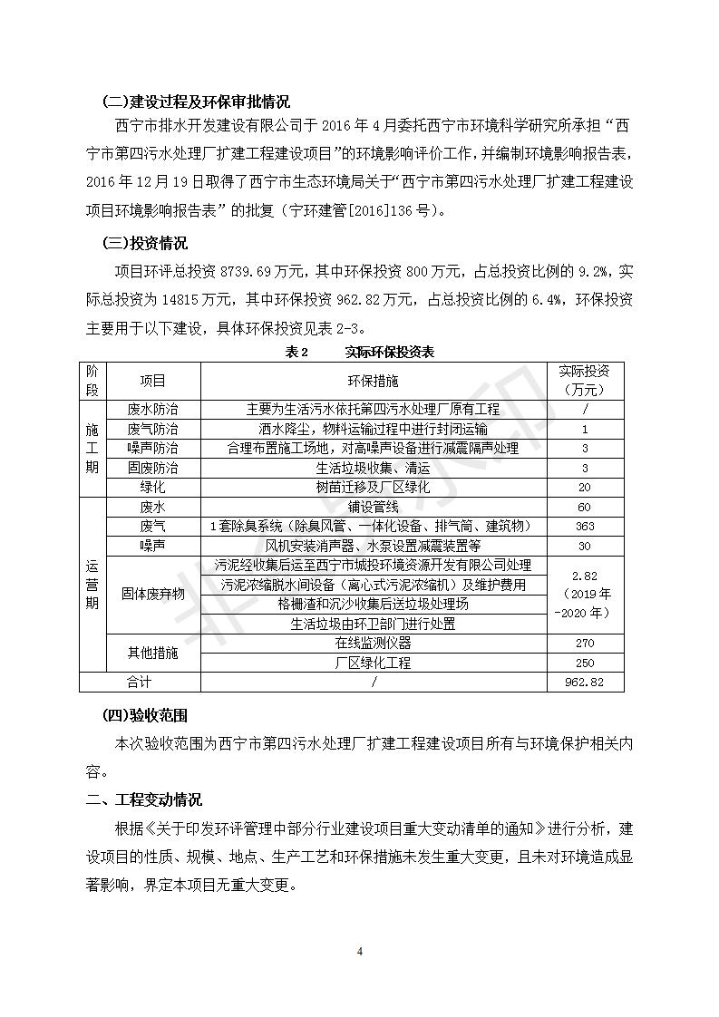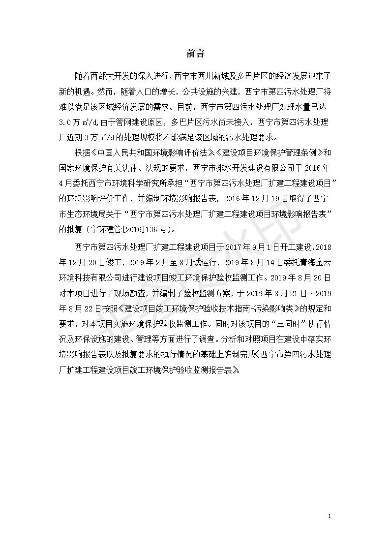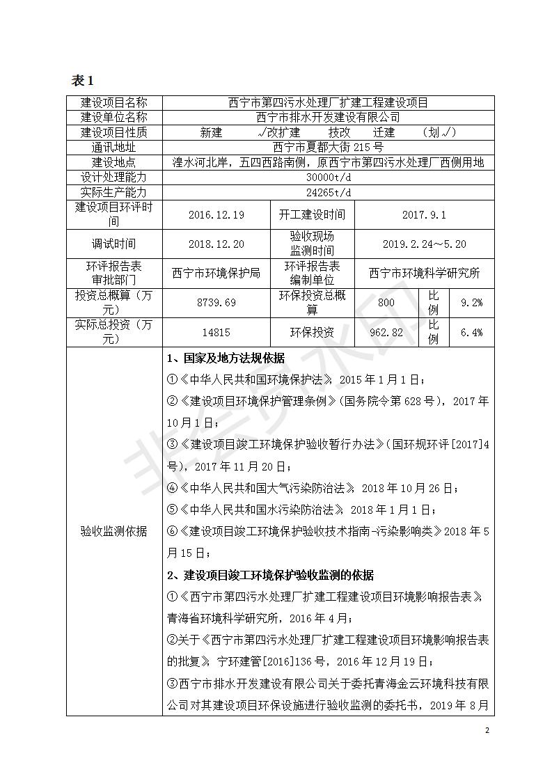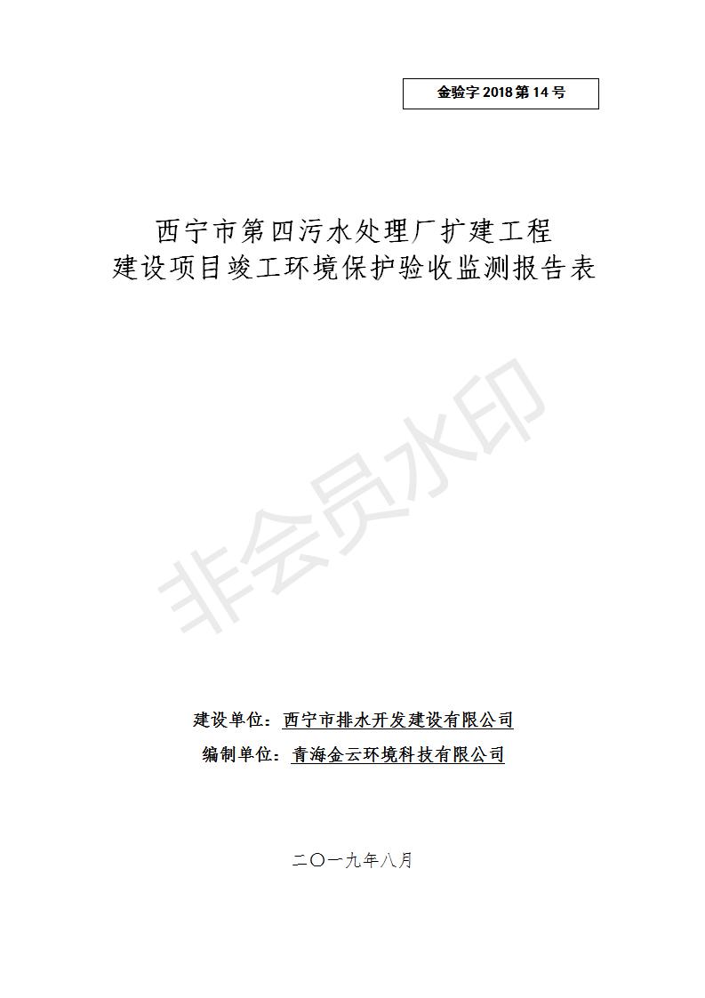 西寧市第四污水處理廠擴(kuò)建工程建設(shè)項(xiàng)目竣工環(huán)境保護(hù)驗(yàn)收監(jiān)測(cè)報(bào)告表公示