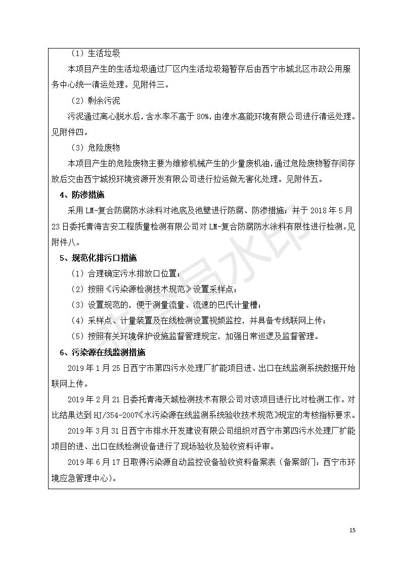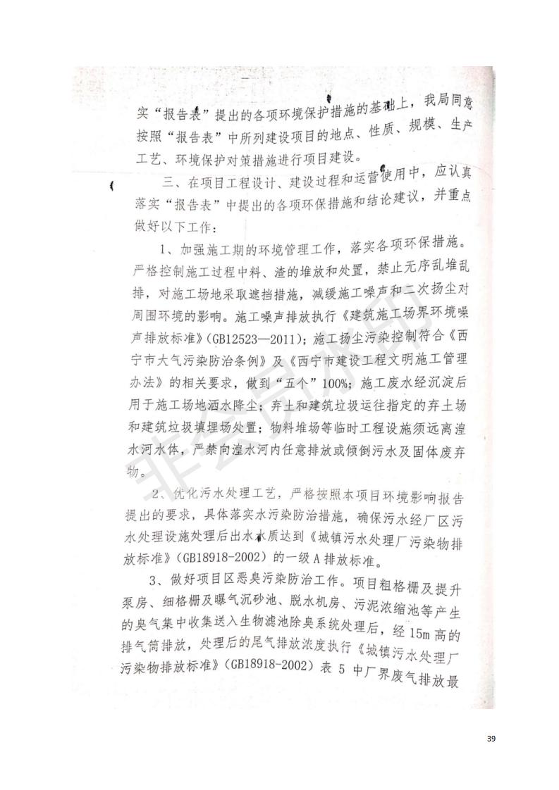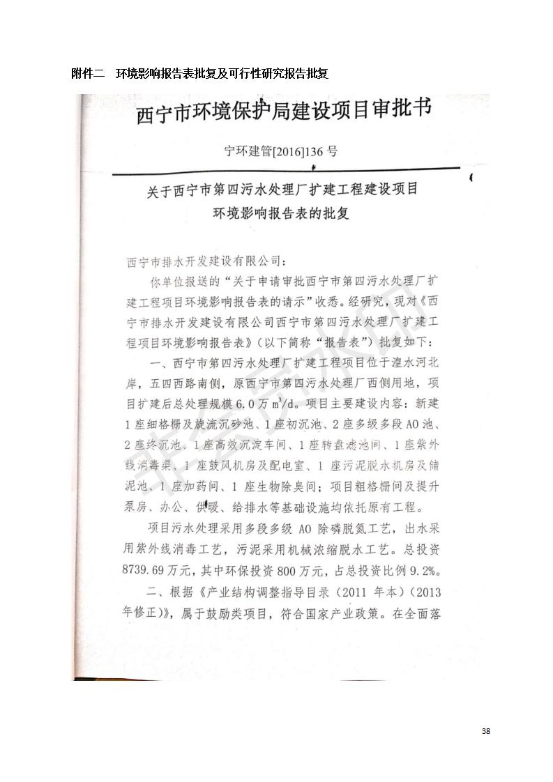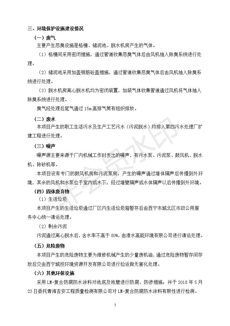 西寧市第四污水處理廠擴(kuò)建工程建設(shè)項(xiàng)目竣工環(huán)境保護(hù)驗(yàn)收監(jiān)測(cè)報(bào)告表公示