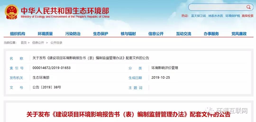 環(huán)境部發(fā)布《建設項目環(huán)境影響報告書(表)編制監(jiān)督管理辦法》配套文件發(fā)布日期:(2019-10-28) 點擊次數(shù):2457 |