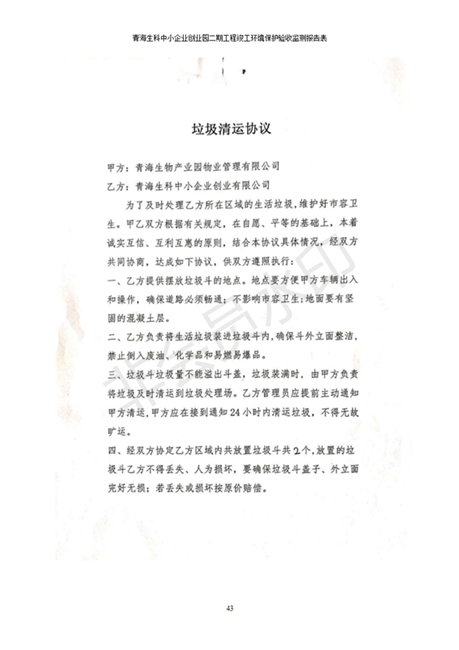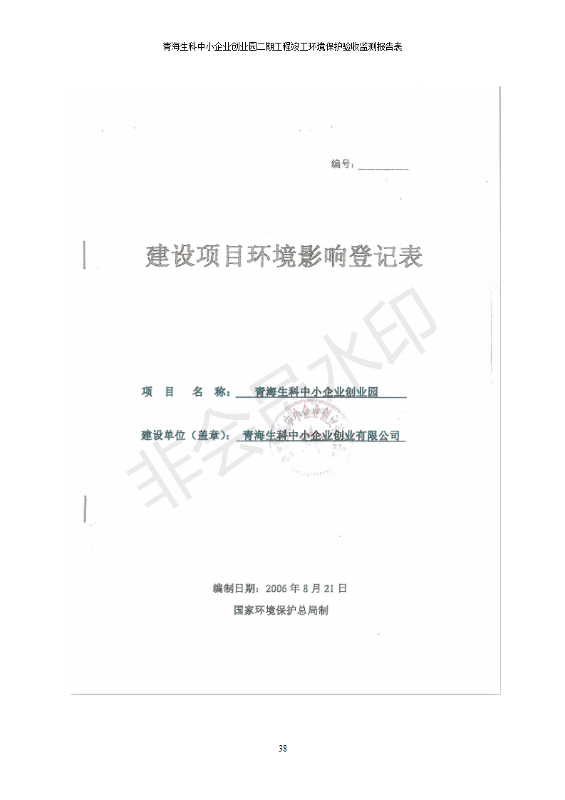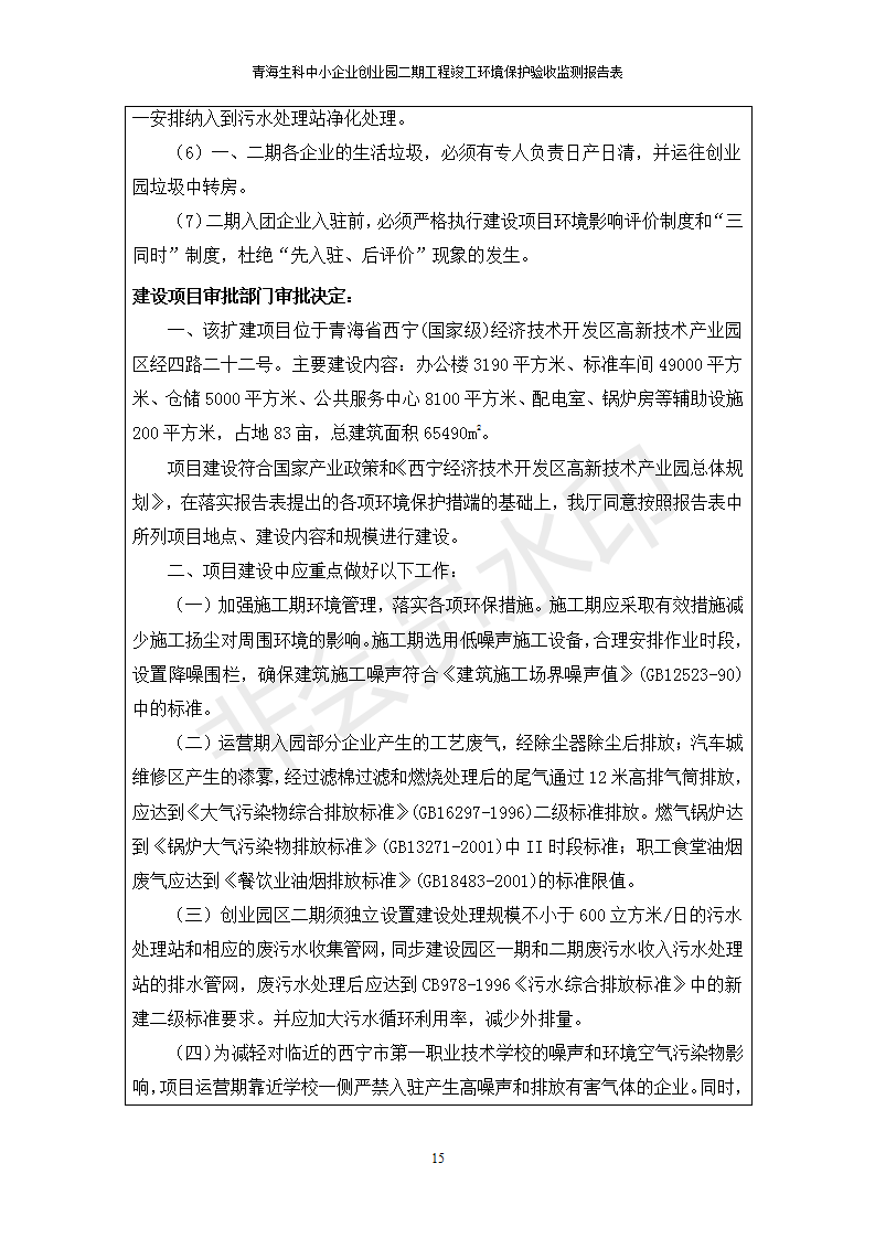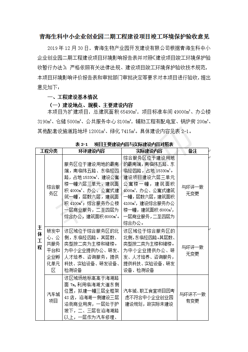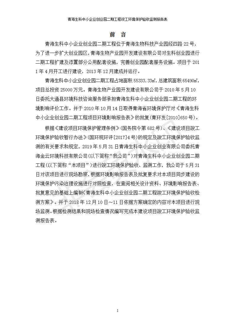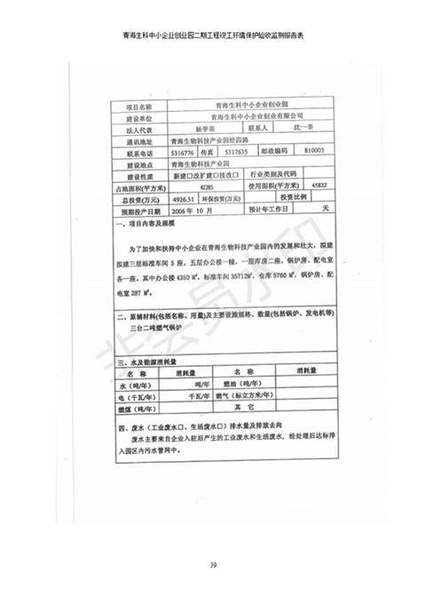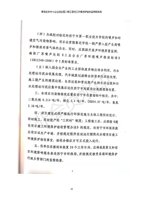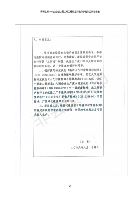 據(jù)中華人民共和國國務(wù)院令第682號《國務(wù)院關(guān)于修改〈建設(shè)項(xiàng)目環(huán)境保護(hù)管理?xiàng)l例〉的決定》和《建設(shè)項(xiàng)目竣工環(huán)境保護(hù)驗(yàn)收暫行辦法》(國務(wù)院令682號),青海生科中小企業(yè)創(chuàng)業(yè)園二期工程建設(shè)項(xiàng)目(包括竣工環(huán)境保護(hù)驗(yàn)收監(jiān)測報(bào)告表和驗(yàn)收意見)公示如下。 一、項(xiàng)目名稱:青海生科中小企業(yè)創(chuàng)業(yè)園二期工程建設(shè)項(xiàng)目 二、地點(diǎn):西寧市生物園區(qū)經(jīng)四路26號 五、聯(lián)系人:張憲周 六、聯(lián)系電話:13997290897 七、公示時(shí)間:二〇二〇年二月三日至二〇二〇年二月二十八日 公示期間,對上述公示內(nèi)容如有異議,請以書面形式反饋,個(gè)人須署真實(shí)姓名,單位須加蓋公章。