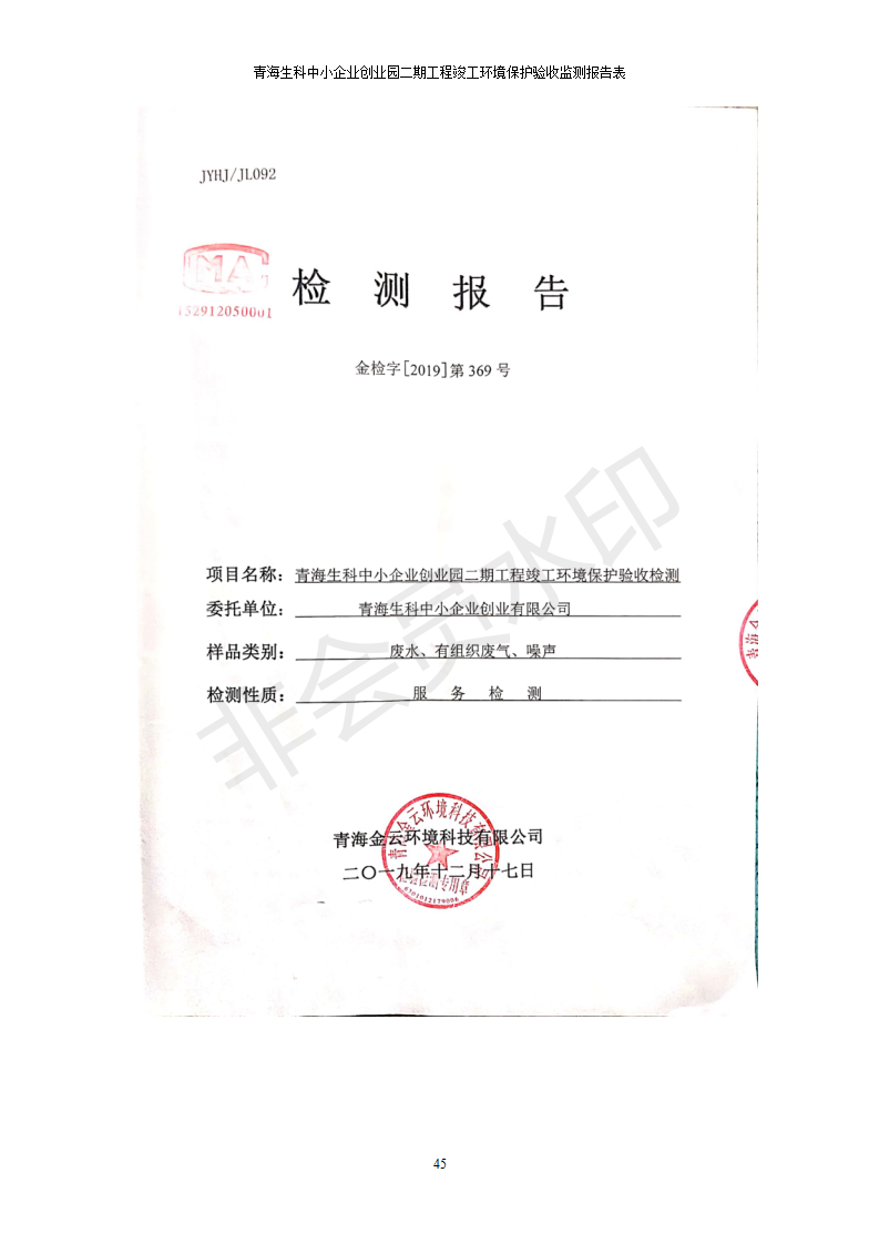 青海生科中小企業(yè)創(chuàng)業(yè)園二期工程建設(shè)項(xiàng)目竣工環(huán)境保護(hù)驗(yàn)收檢測報(bào)告表公示發(fā)布日期:(2020-2-1) 點(diǎn)擊次數(shù):2345 |
