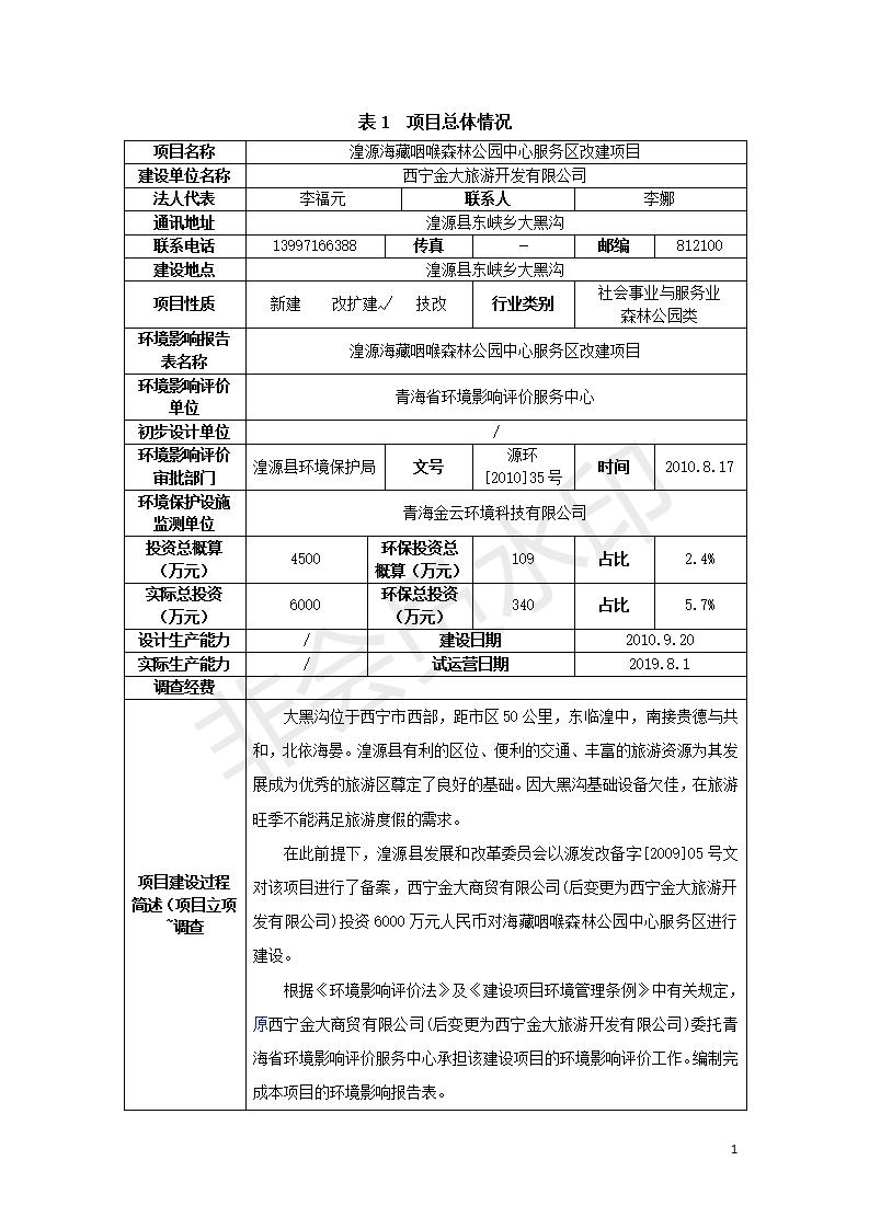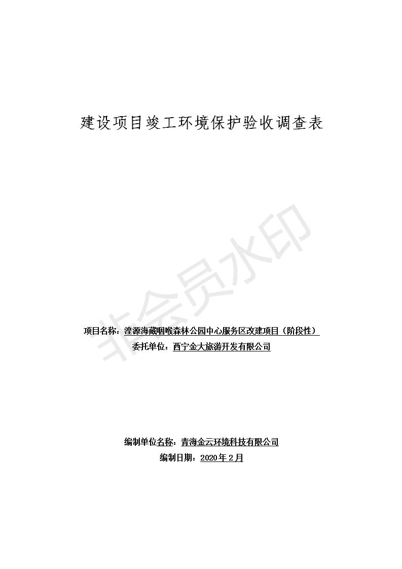 湟源海藏咽喉森林公園中心服務(wù)區(qū)改建項(xiàng)目(階段性)竣工環(huán)境保護(hù)驗(yàn)收調(diào)查表發(fā)布日期:(2020-4-29) 點(diǎn)擊次數(shù):3060 |