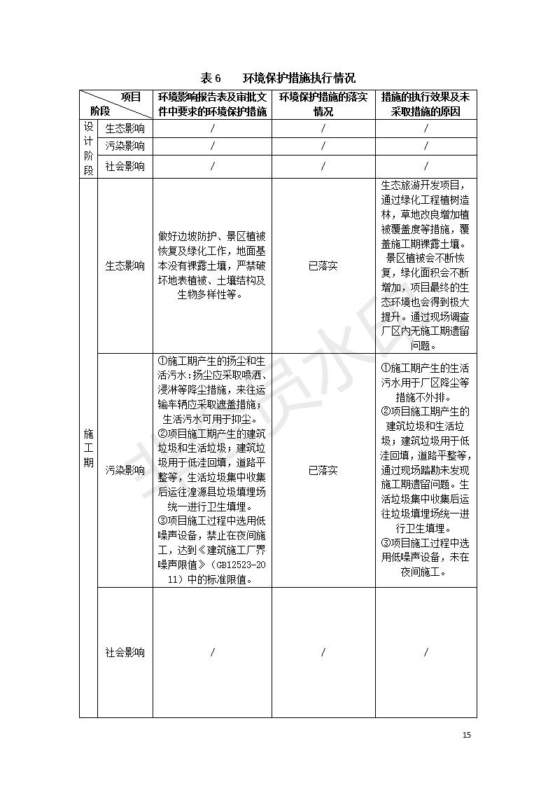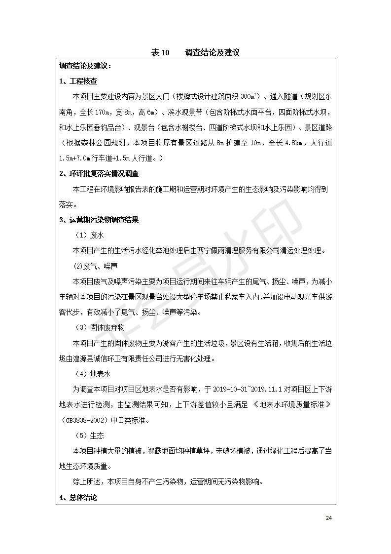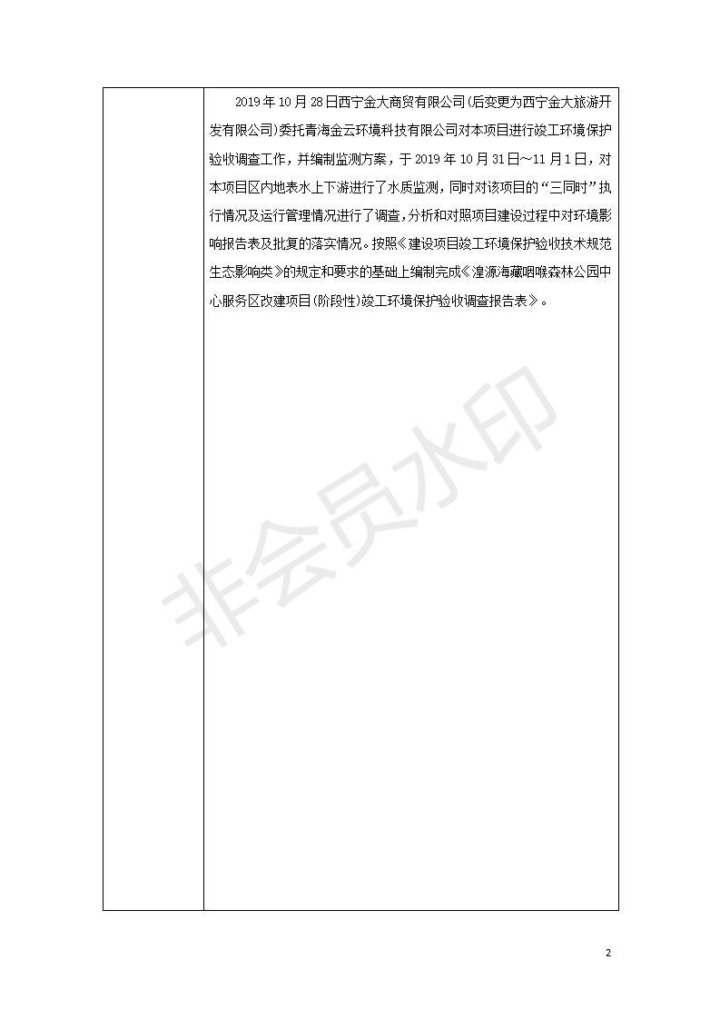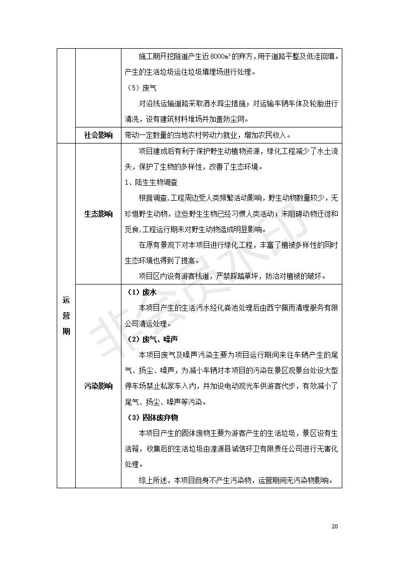 根據(jù)中華人民共和國(guó)國(guó)務(wù)院令第682號(hào)《國(guó)務(wù)院關(guān)于修改〈建設(shè)項(xiàng)目環(huán)境保護(hù)管理?xiàng)l例〉的決定》和《建設(shè)項(xiàng)目竣工環(huán)境保護(hù)驗(yàn)收暫行辦法》(國(guó)務(wù)院令682號(hào)),湟源海藏咽喉森林公園中心服務(wù)區(qū)改建項(xiàng)目(階段性),(包括竣工環(huán)境保護(hù)驗(yàn)收調(diào)查表和驗(yàn)收意見(jiàn))公示如下。 一、項(xiàng)目名稱(chēng):湟源海藏咽喉森林公園中心服務(wù)區(qū)改建項(xiàng)目(階段性) 竣工環(huán)境保護(hù)驗(yàn)收調(diào)查表 二、地點(diǎn):青海省湟源縣東峽鄉(xiāng)大黑溝 三、建設(shè)單位:西寧金大旅游開(kāi)發(fā)有限公司 四、建設(shè)內(nèi)容:本次階段性驗(yàn)收以自然景觀為主,建設(shè)內(nèi)容為濱水景觀帶、觀景臺(tái)、景區(qū)道路及基礎(chǔ)設(shè)施。項(xiàng)目范圍從景區(qū)大門(mén)至中心位置,全長(zhǎng)4800m。 五、聯(lián)系人:張工 六、聯(lián)系電 話:0971-6515411 七、公示時(shí)間:二〇二〇年四月二十九日至二〇二〇年五月二十八日 公示期間,對(duì)上述公示內(nèi)容如有異議,請(qǐng)以書(shū)面形式反饋,個(gè)人須署真實(shí)姓名,單位須加蓋公章。