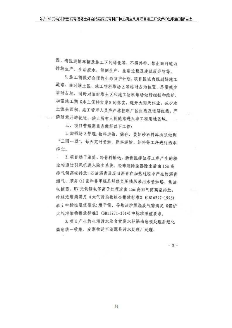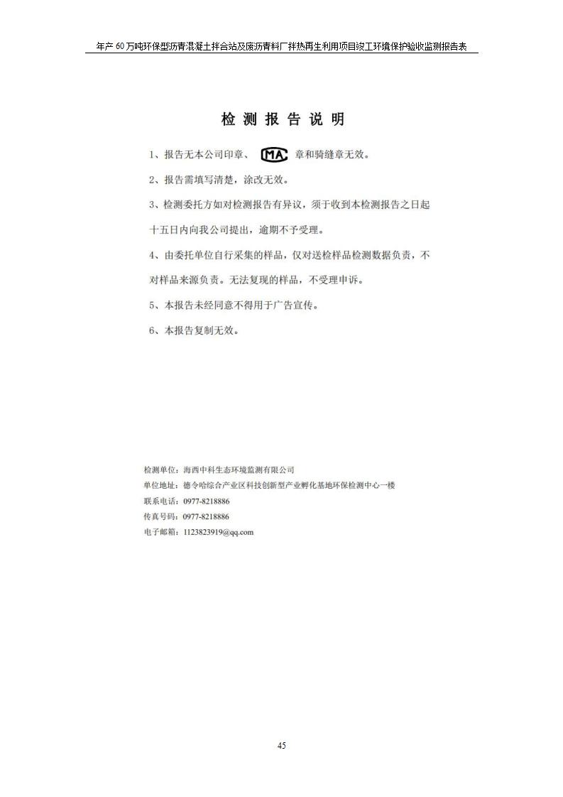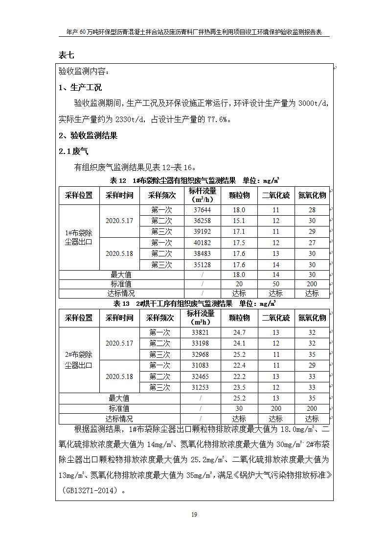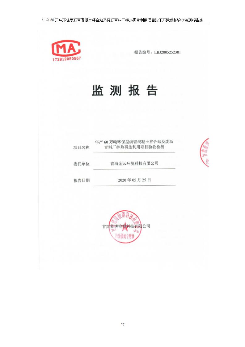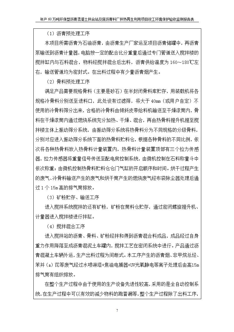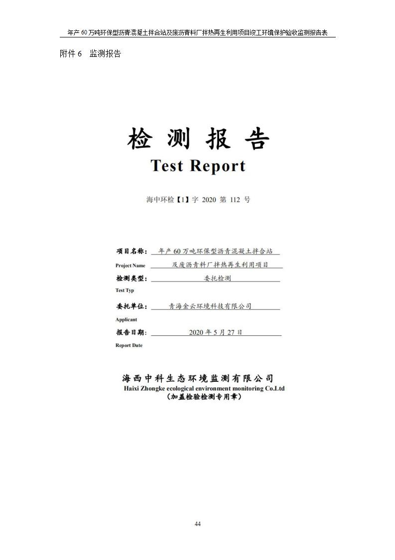 年產(chǎn)60萬噸環(huán)保型瀝青混凝土拌合站及廢瀝青料廠拌熱再生利用項目竣工環(huán)境保護驗收監(jiān)測報告表公示發(fā)布日期:(2020-7-6) 點擊次數(shù):3902 |