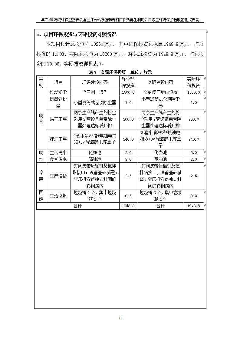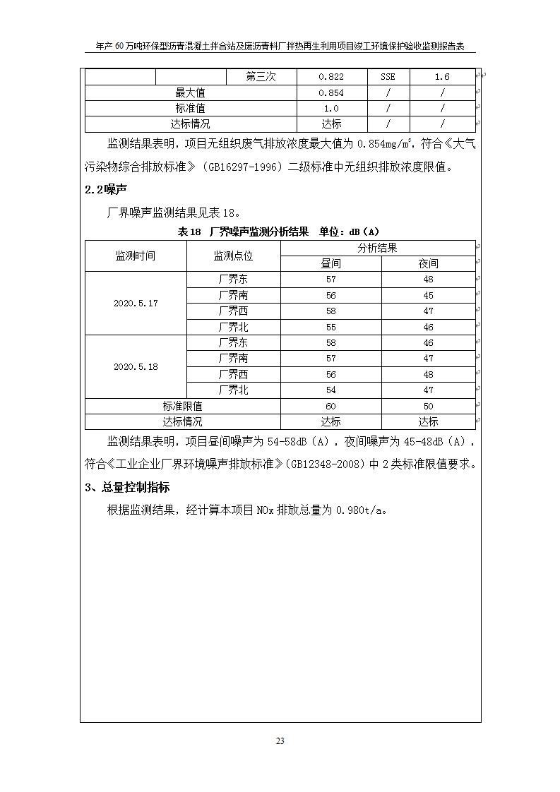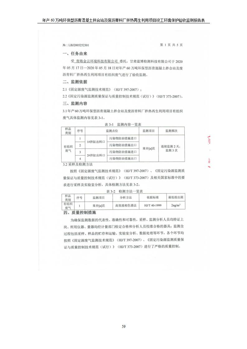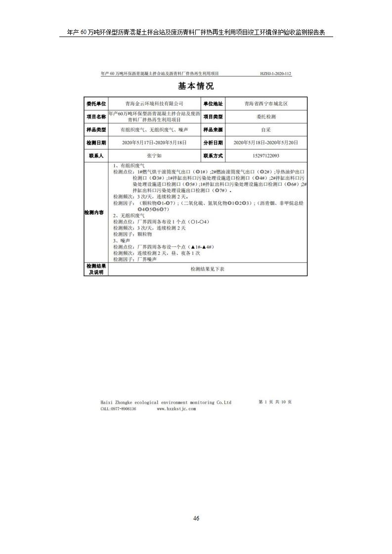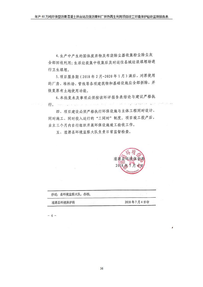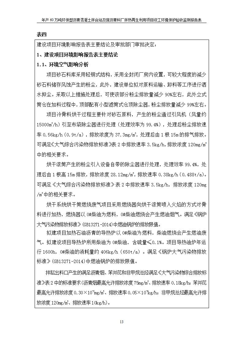 年產(chǎn)60萬噸環(huán)保型瀝青混凝土拌合站及廢瀝青料廠拌熱再生利用項目竣工環(huán)境保護驗收監(jiān)測報告表公示發(fā)布日期:(2020-7-6) 點擊次數(shù):3902 |