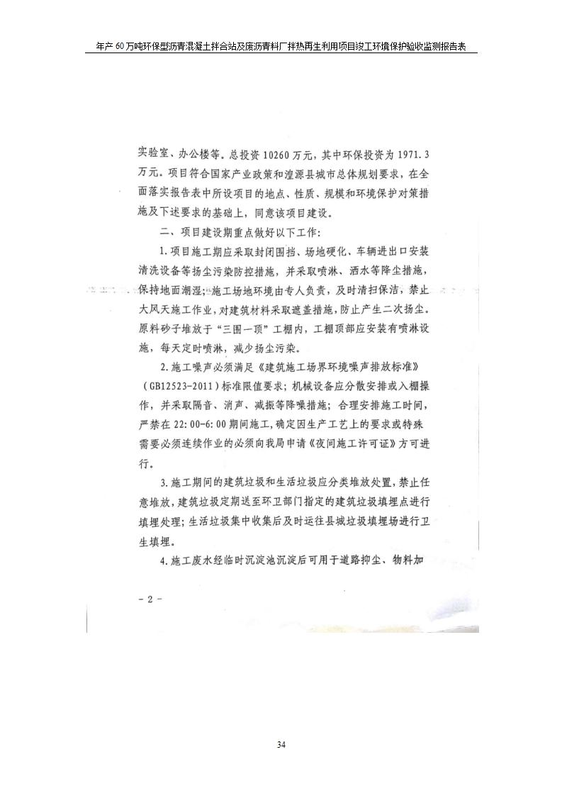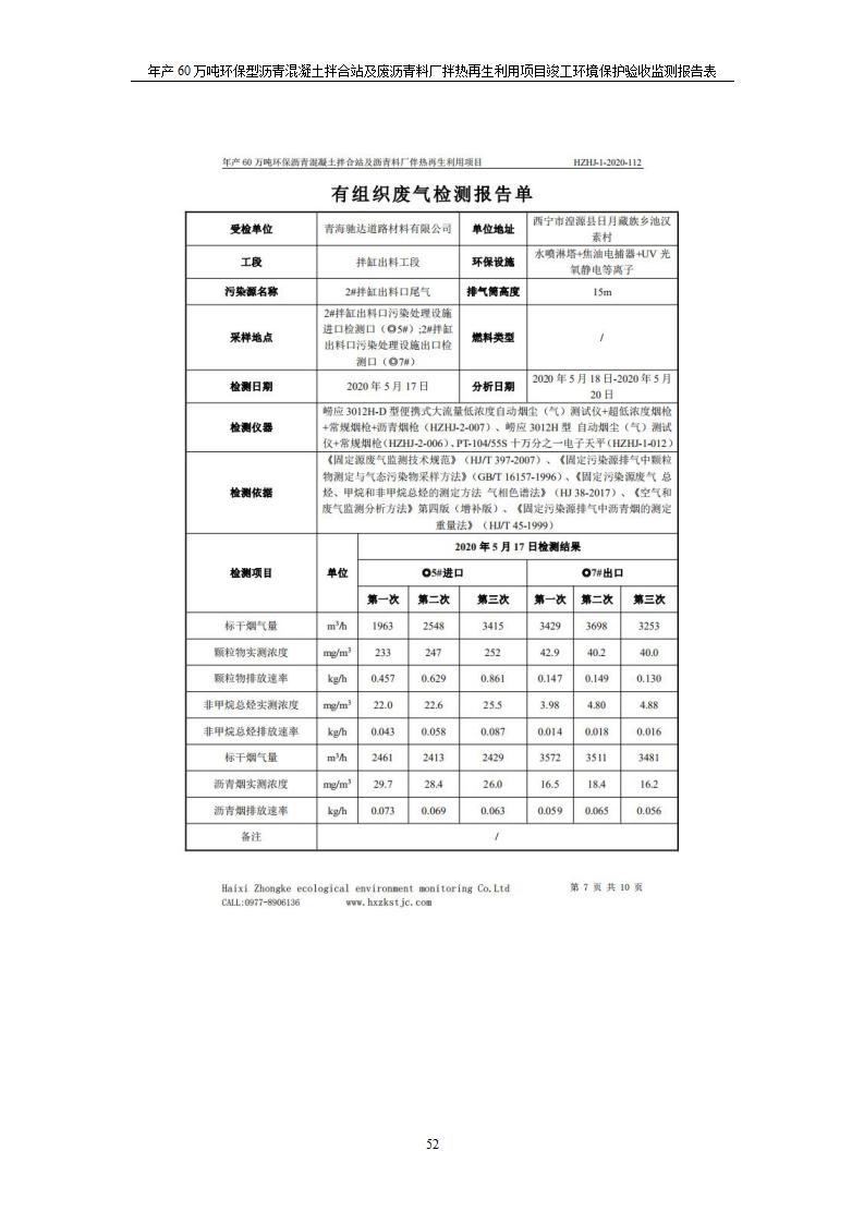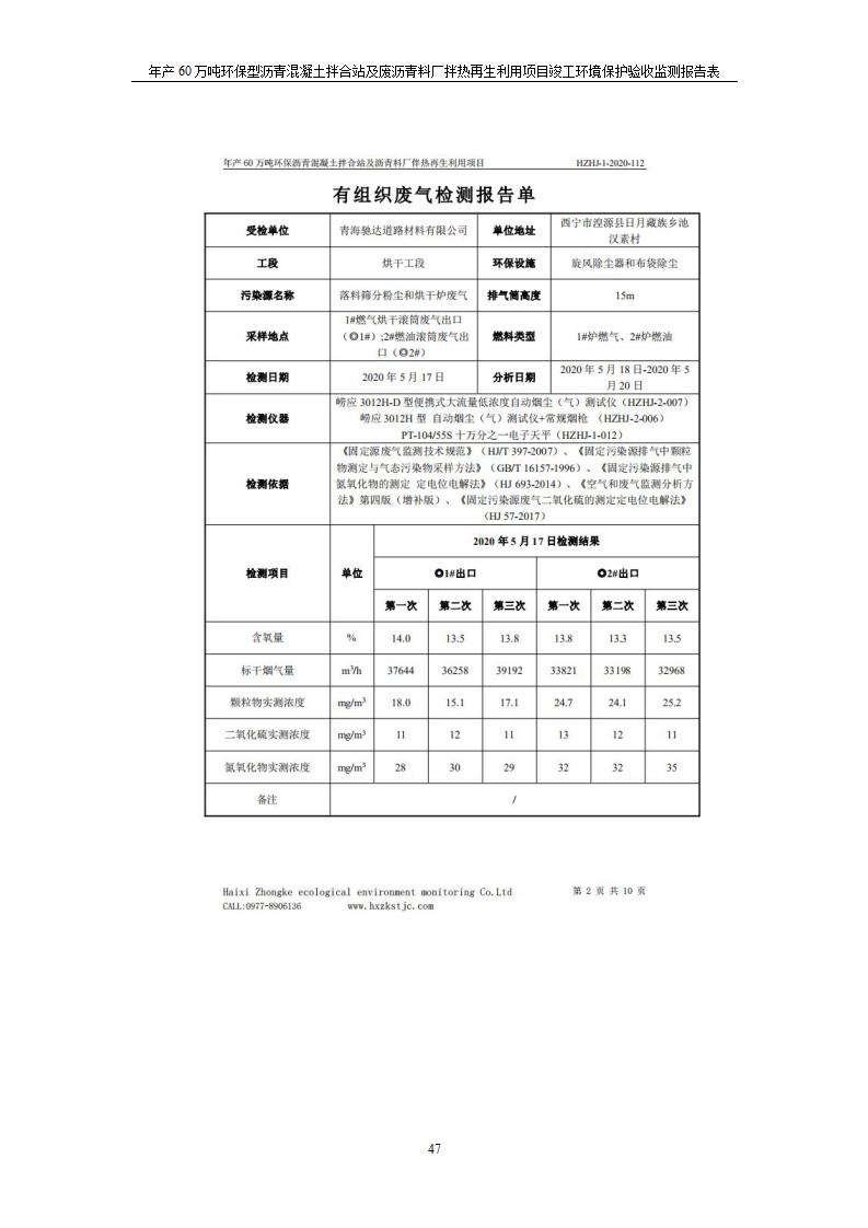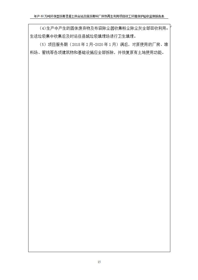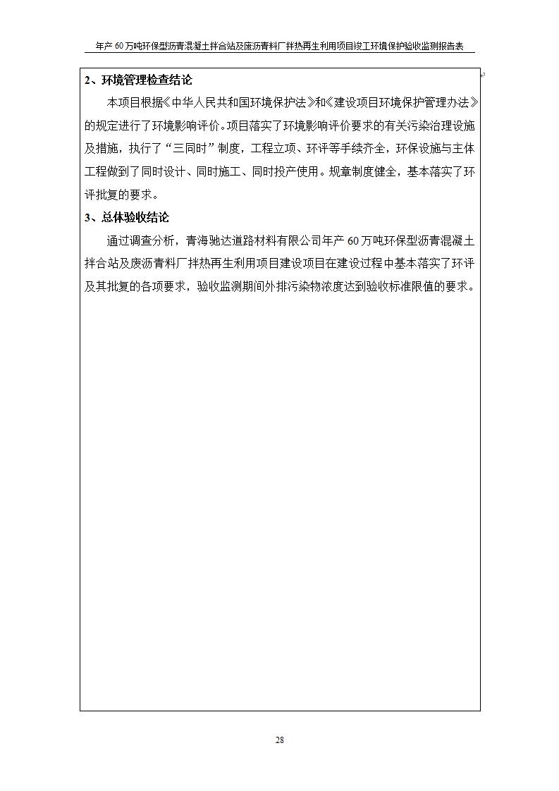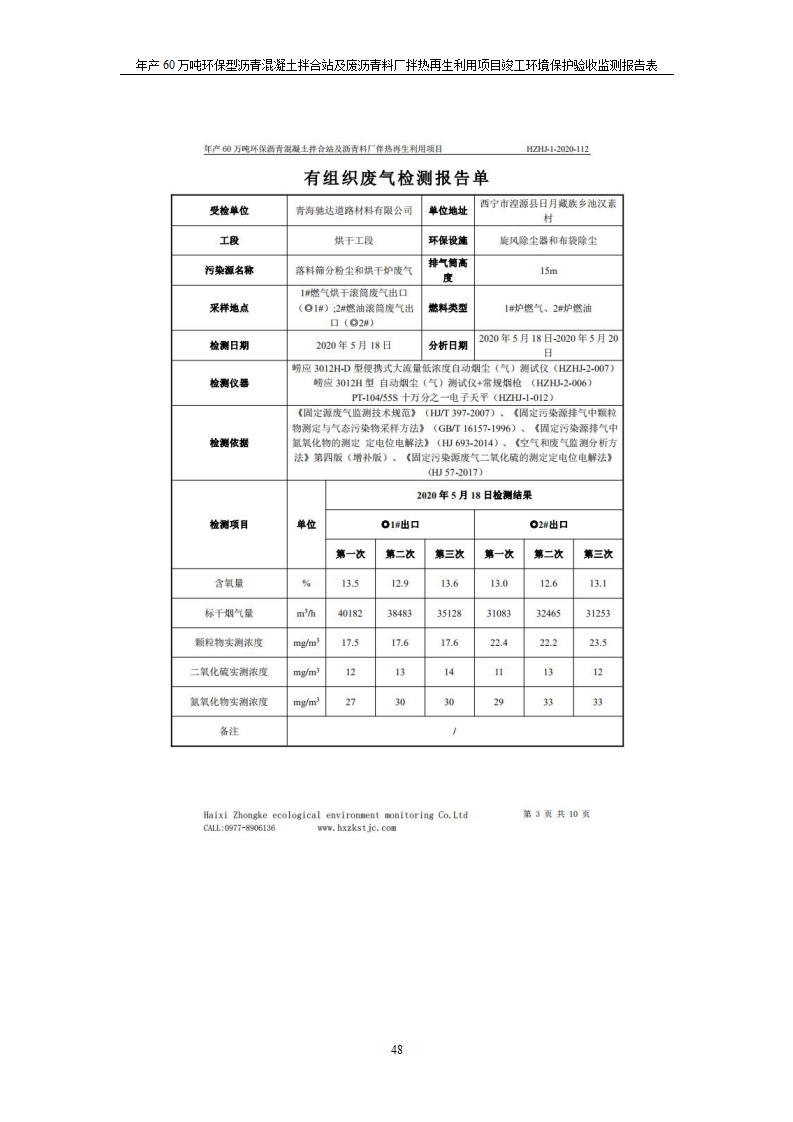 年產(chǎn)60萬噸環(huán)保型瀝青混凝土拌合站及廢瀝青料廠拌熱再生利用項目竣工環(huán)境保護驗收監(jiān)測報告表公示發(fā)布日期:(2020-7-6) 點擊次數(shù):3902 |