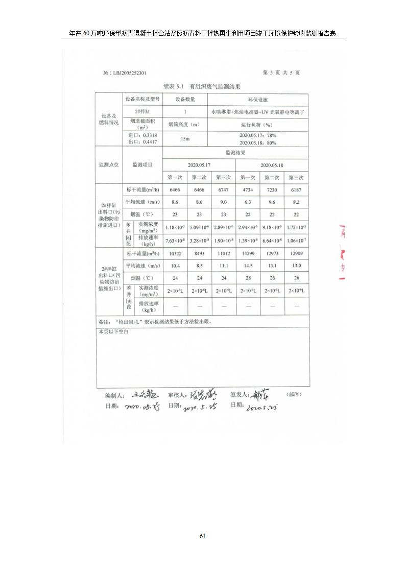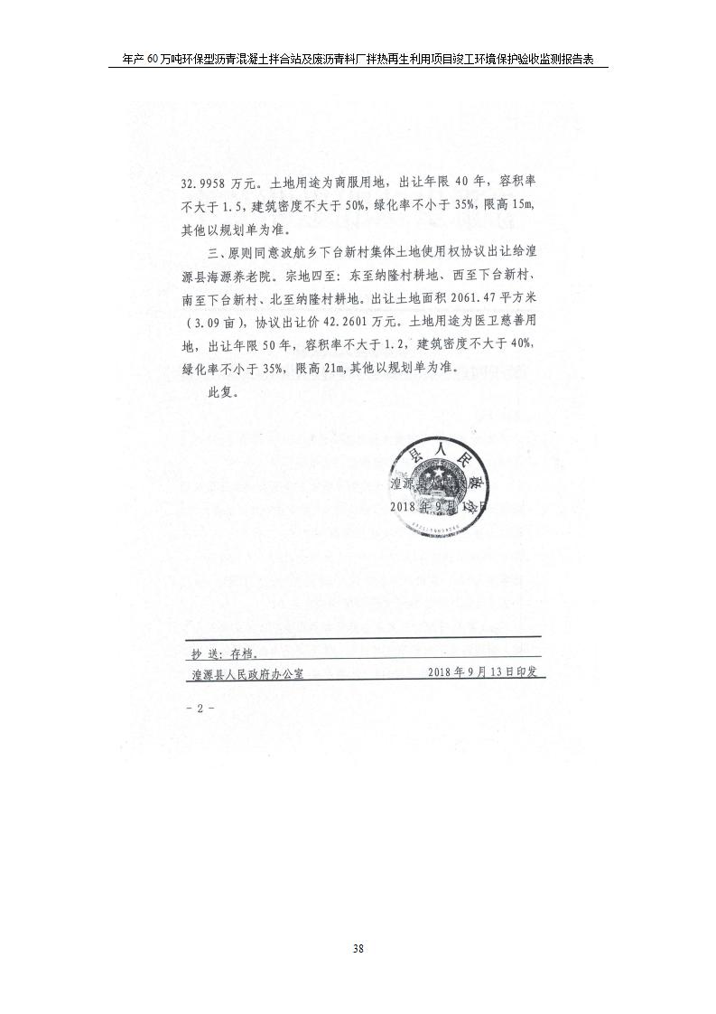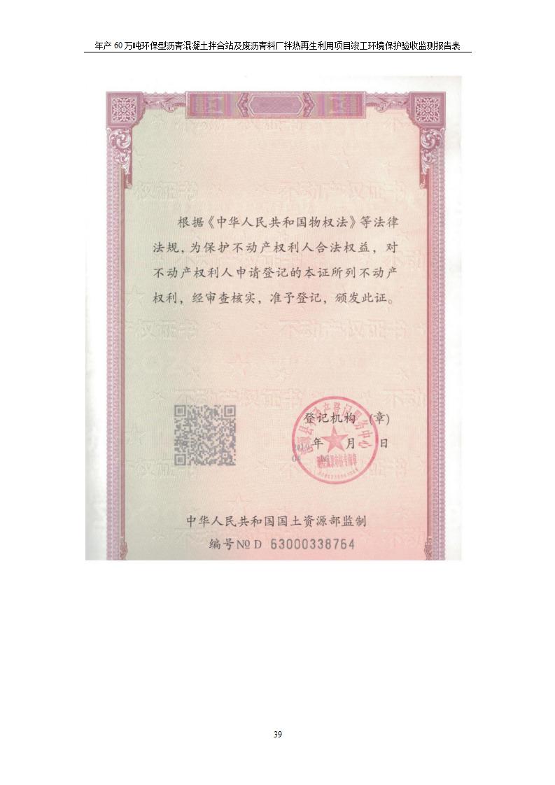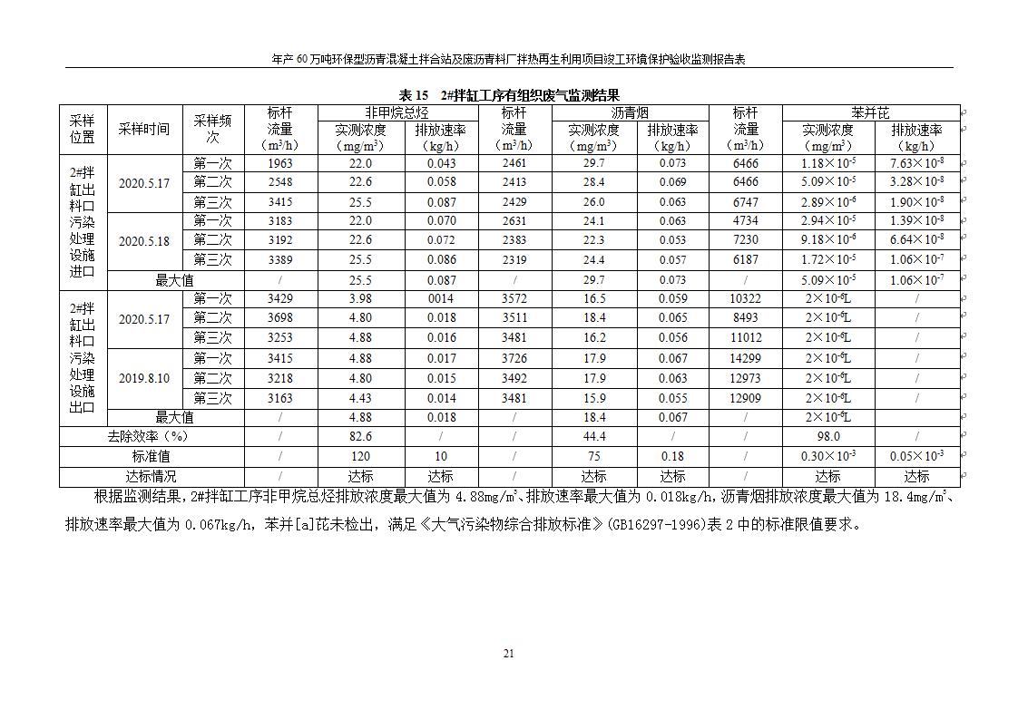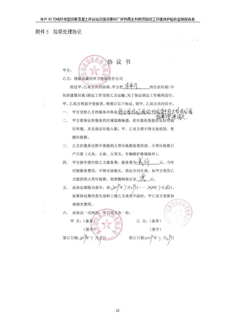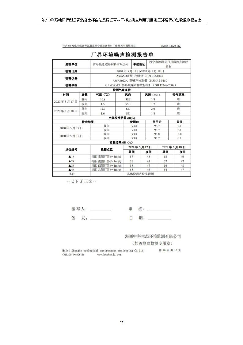 年產(chǎn)60萬噸環(huán)保型瀝青混凝土拌合站及廢瀝青料廠拌熱再生利用項目竣工環(huán)境保護驗收監(jiān)測報告表公示發(fā)布日期:(2020-7-6) 點擊次數(shù):3902 |