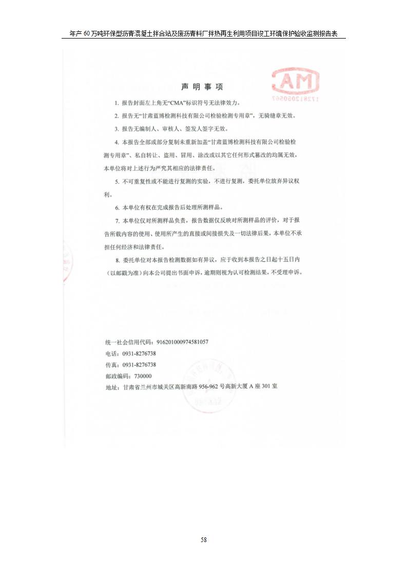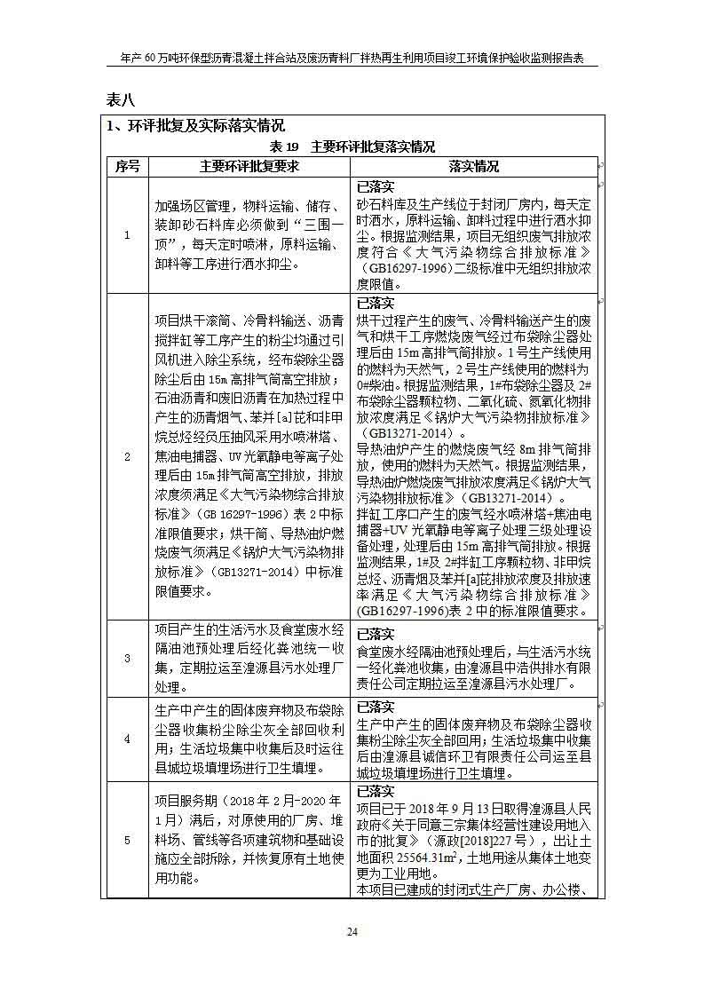根據(jù)中華人民共和國國務(wù)院令第682號《國務(wù)院關(guān)于修改〈建設(shè)項目環(huán)境保護管理條例〉的決定》和《建設(shè)項目竣工環(huán)境保護驗收暫行辦法》(國務(wù)院令682號),青海馳達道路材料有限公司年產(chǎn)60萬噸環(huán)保型瀝青混凝土拌合站及廢瀝青料廠拌熱再生利用項目竣工環(huán)境保護驗收監(jiān)測報告表公示如下。 一、項目名稱:年產(chǎn)60萬噸環(huán)保型瀝青混凝土拌合站及廢瀝青料廠拌熱再生利用項目竣工環(huán)境保護驗收監(jiān)測報告表 二、地點:湟源縣日月藏族鄉(xiāng)池漢素村 三、建設(shè)單位:青海馳達道路材料有限公司 四、建設(shè)內(nèi)容:本項目共有2條瀝青砼生產(chǎn)線及1條穩(wěn)定土生產(chǎn)線,配套辦公樓等。 五、聯(lián)系人:楊工 六、聯(lián)系電 話:0971-6515411 七、公示時間:二〇二〇年七月六日至二〇二〇年七月三十一日 公示期間,對上述公示內(nèi)容如有異議,請以書面形式反饋,個人須署真實姓名,單位須加蓋公章。